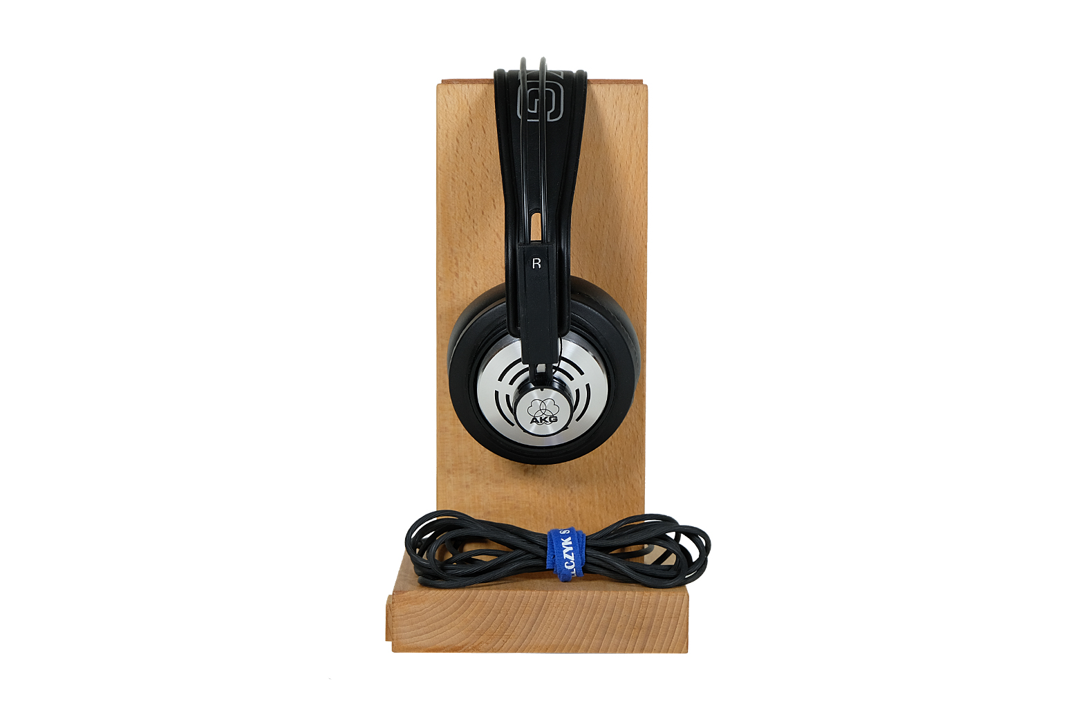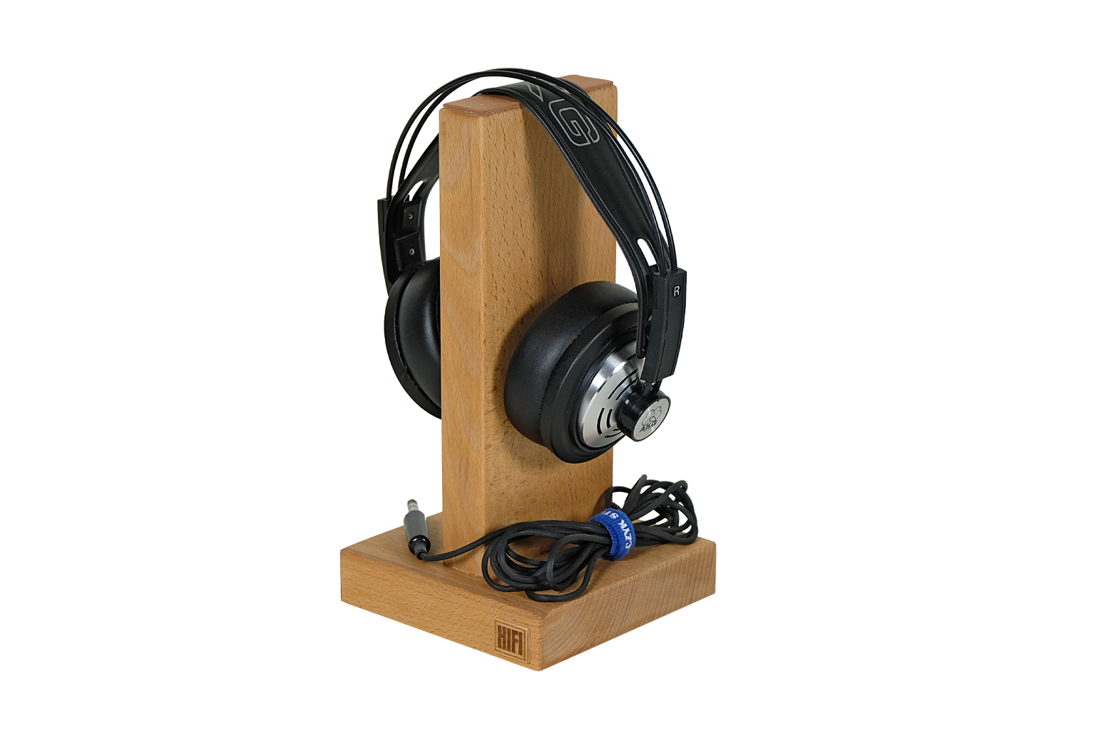 Included in the set are specially designed and hand-made solid headphone stands. The material is high quality solid beech wood covered with Chinese oil produced from natural oils, which gives the stands a beautiful look and makes them very pleasant to the touch. At the top of the stand, the headband rests on a lining made of natural leather, felt pads have been affixed to the base to prevent furniture scratches. Potentiometers are in perfect condition.