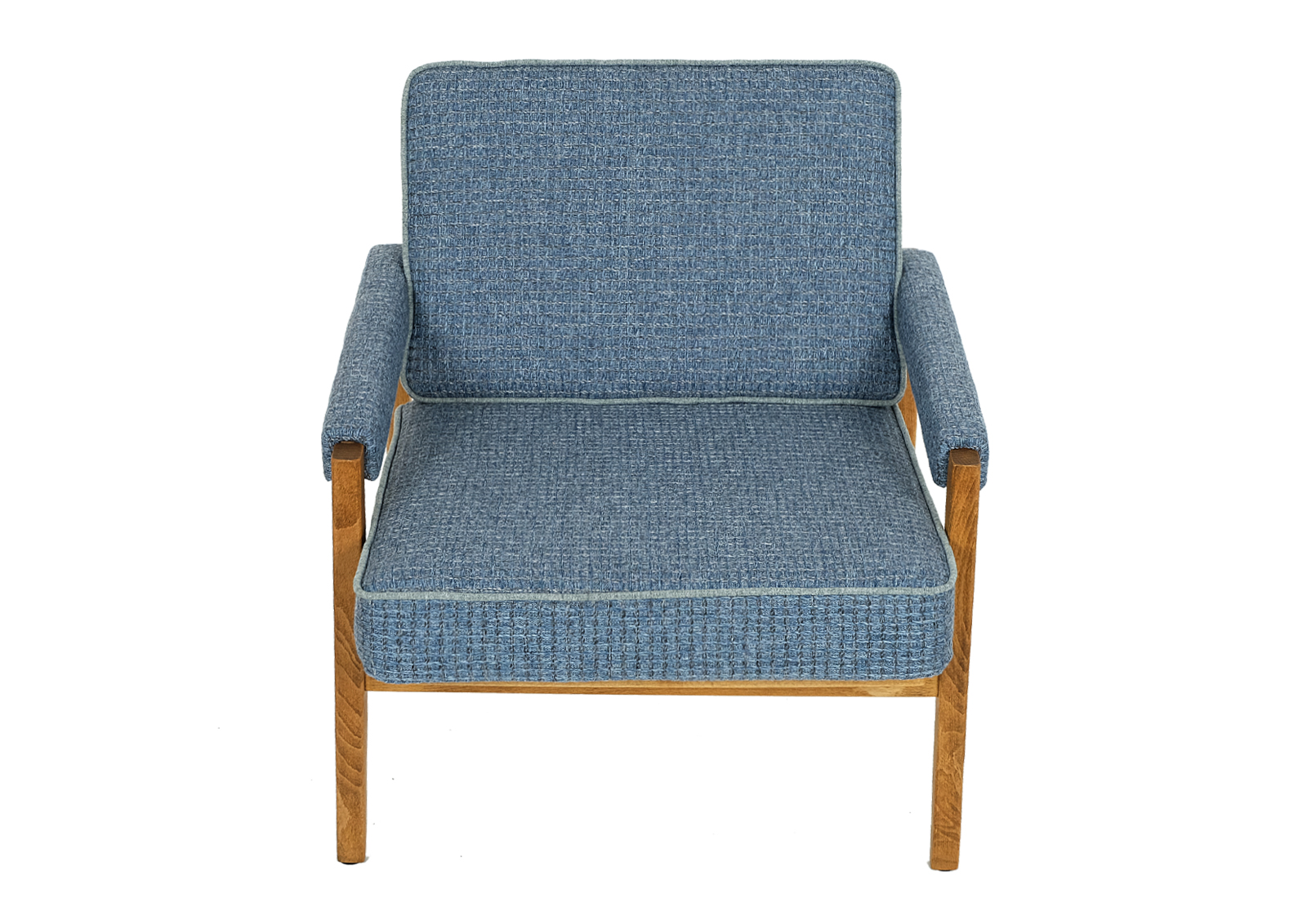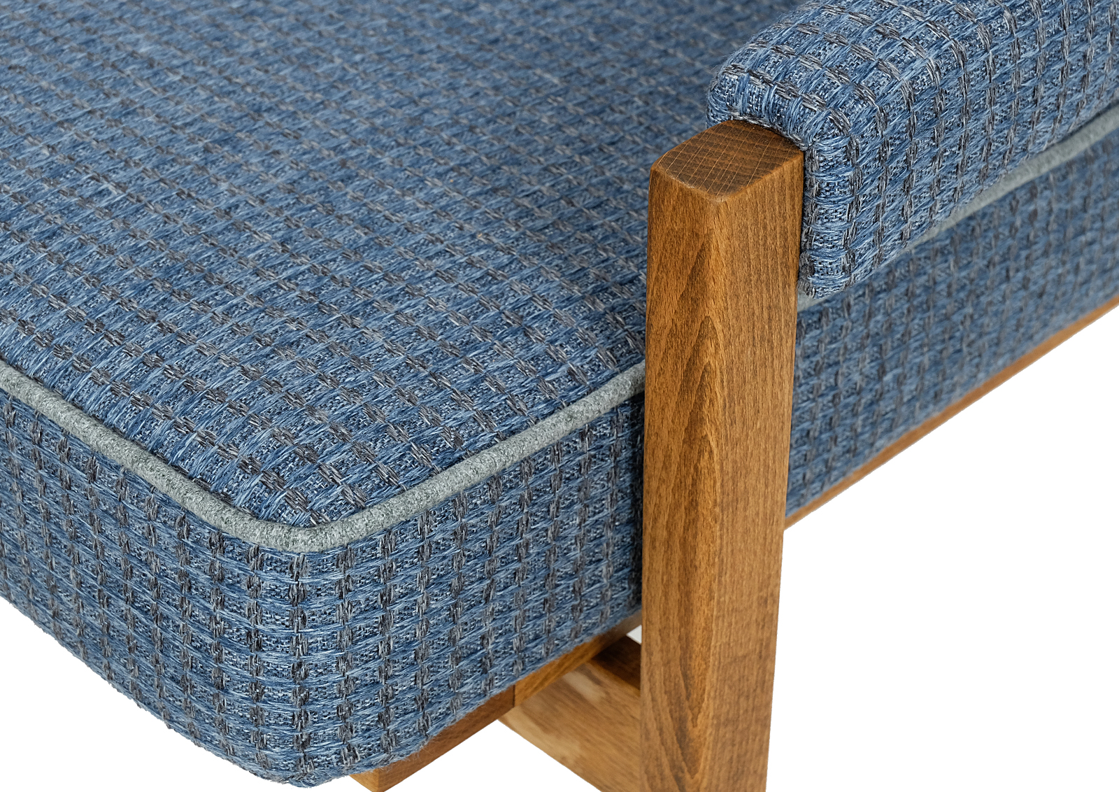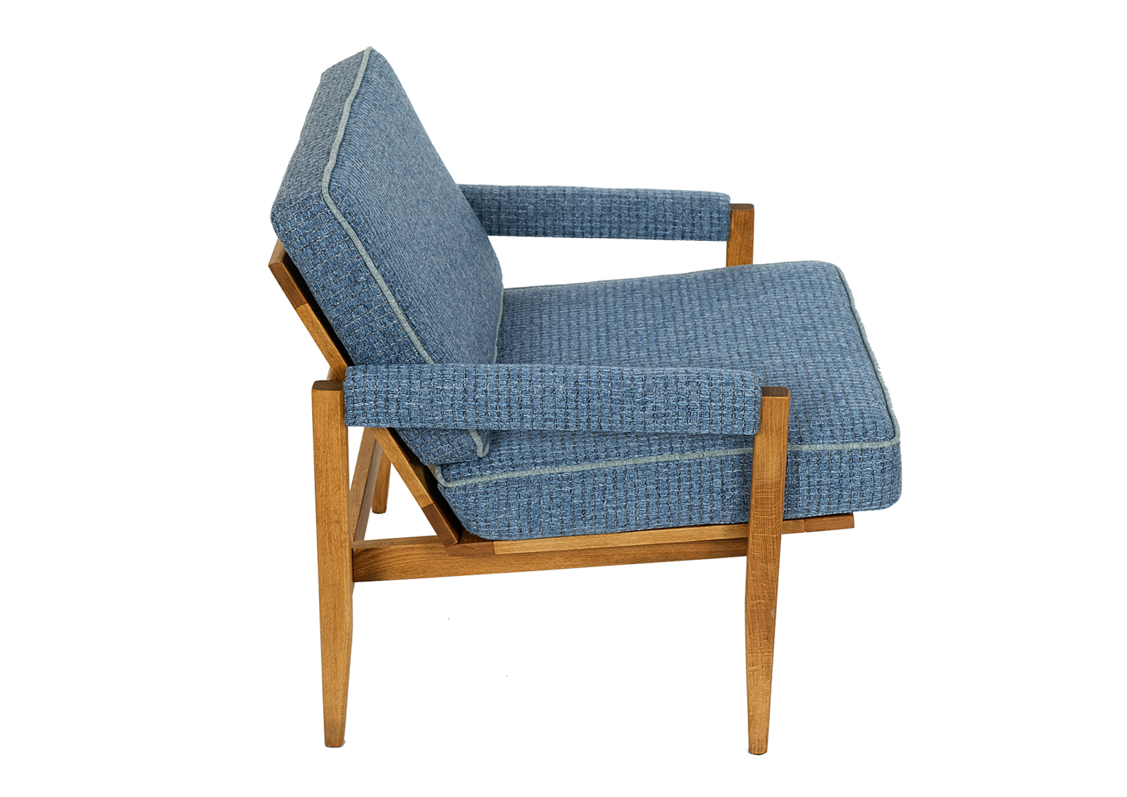 The chair has been completely disassembled, the wood was cleaned of old paint coatings, glued again, protected with oil based on natural Chinese oils, environmentally friendly. Beech wood. New upholstery, upholstery foam, belts, padding. Hand-sewn. Good quality fabric, abrasion resistance 30,000 strokes. New metal screws. If you want to relax in a comfortable armchair after your hard day at work, this is the best choice for you. It combines nice look with a great comfort.