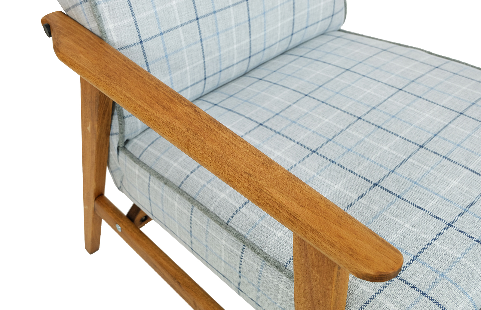 Club armchair from the PRL, Lisek, designed by Henryk Lis. Blue check.