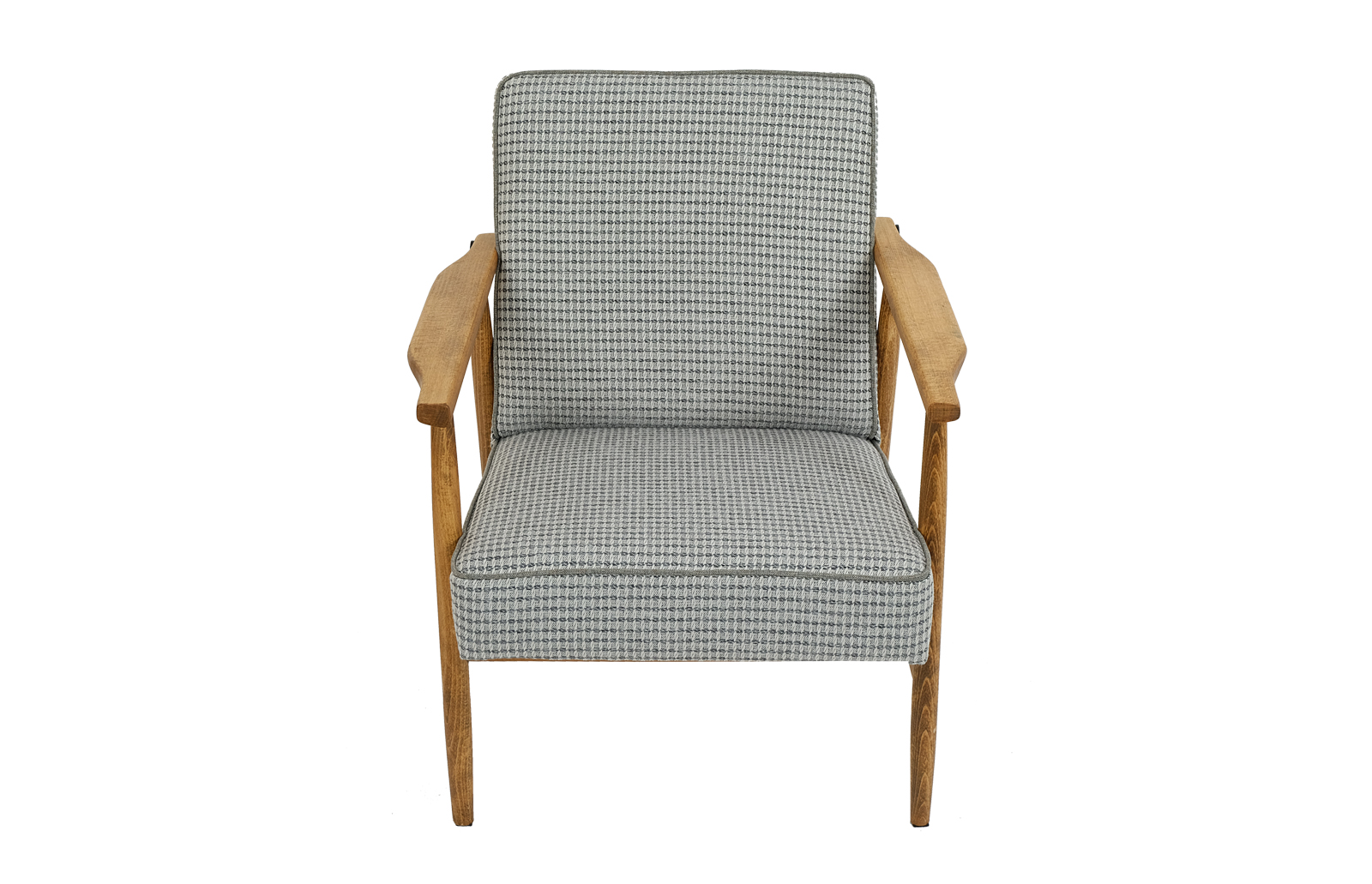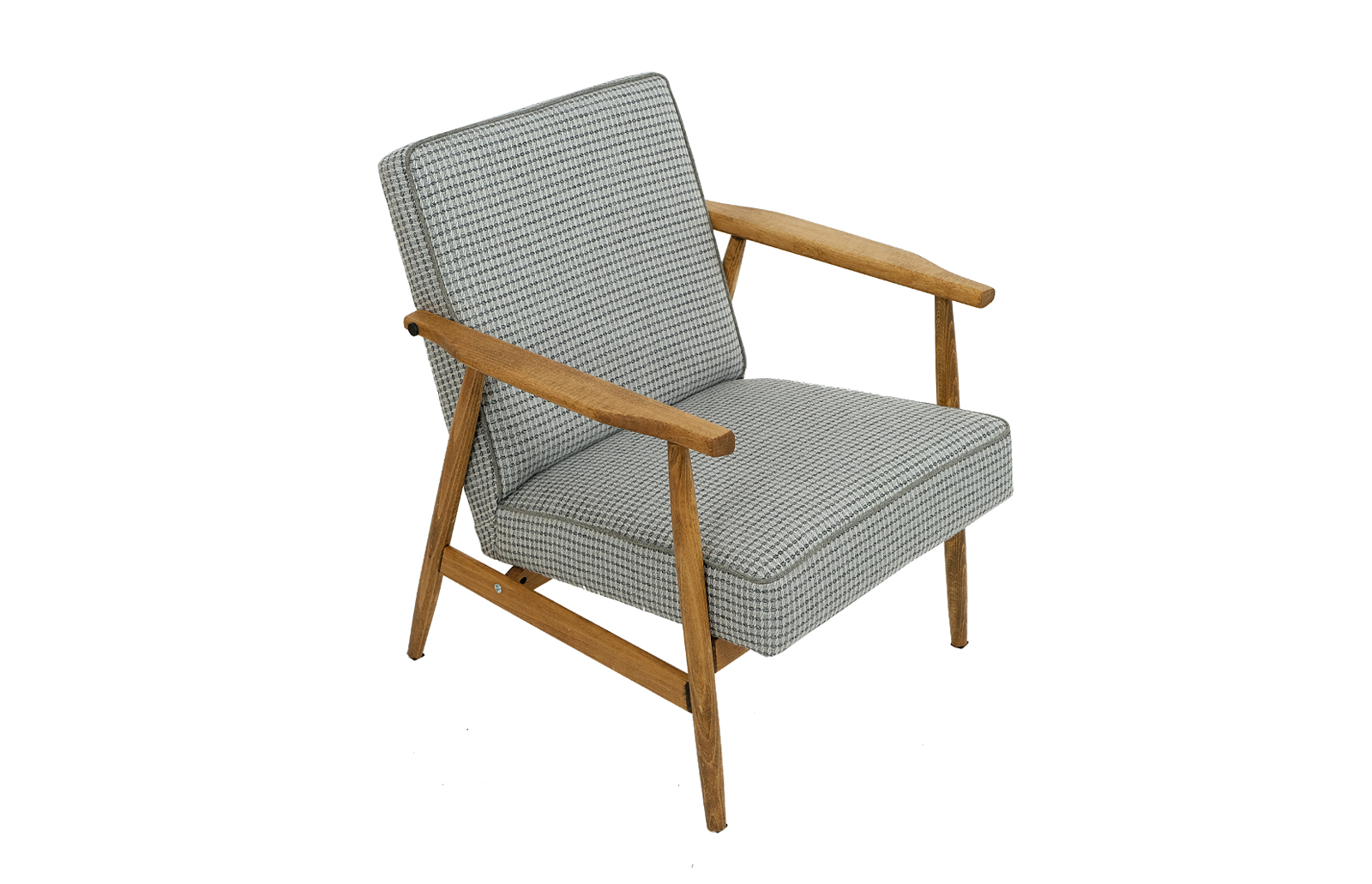 Club armchair from the PRL, Lisek, designed by Henryk Lis. Gray check.