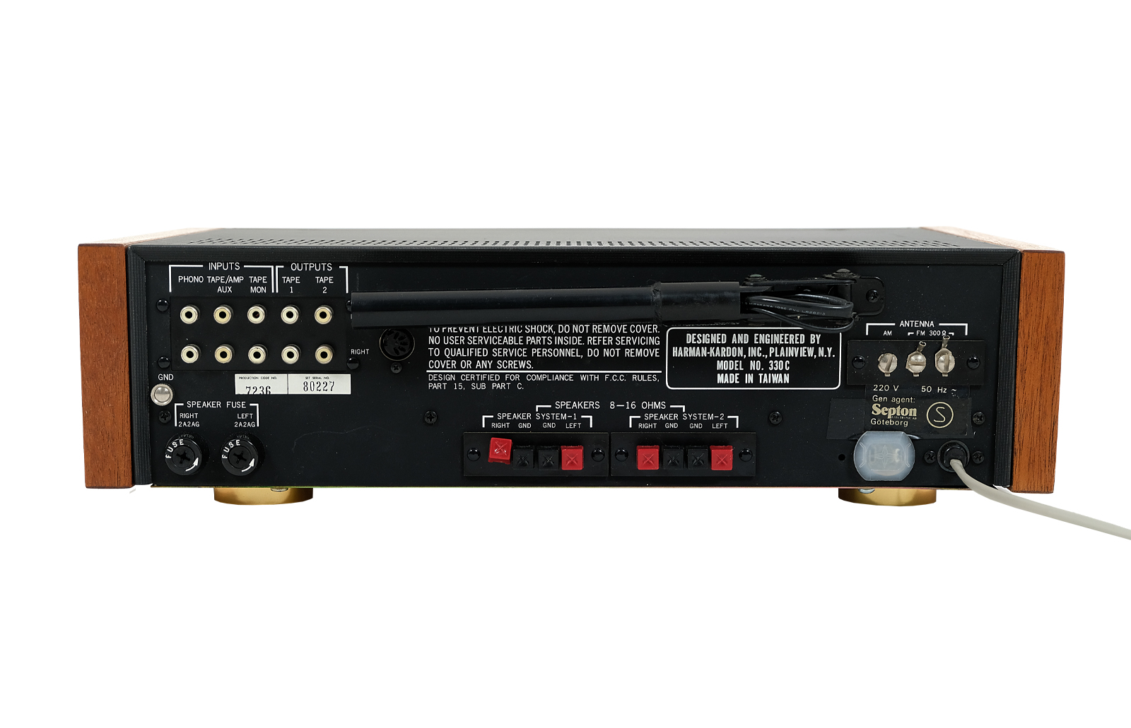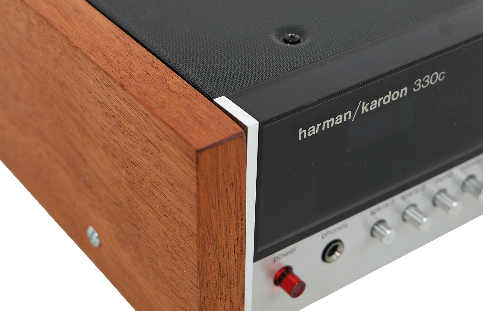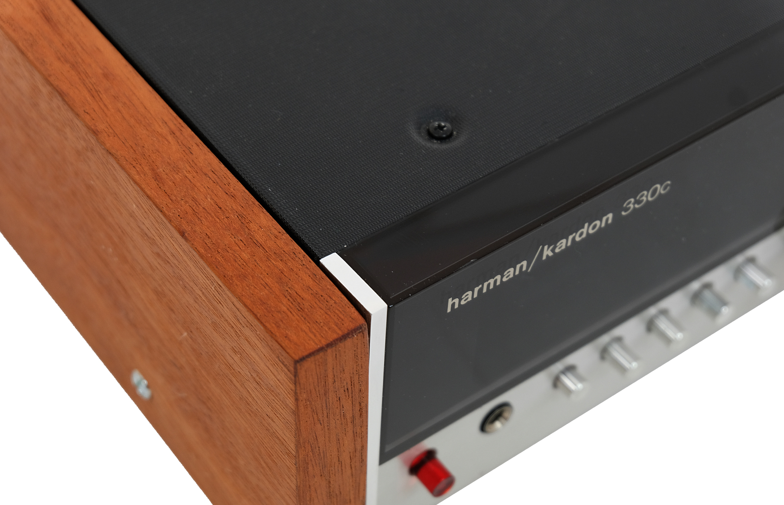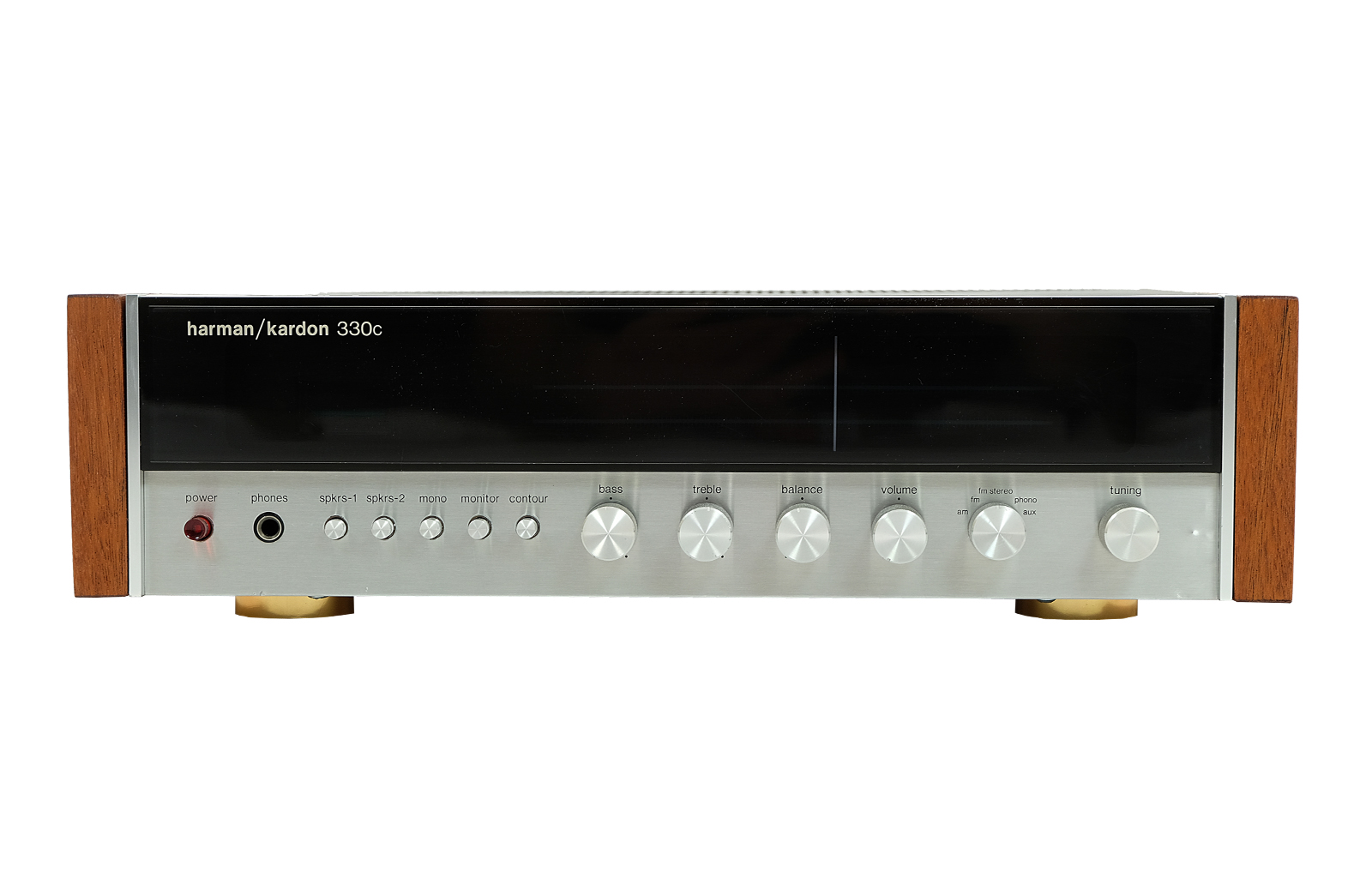 The classic series of 330 (330, 330A, 330B and 330C) receivers produced in 1968-1979 is the quintessence of the Harman Kardon design philosophy – a basic transistor stereo receiver without unnecessary ‘frills’, yet providing the highest quality of sound. This approach is also reflected in the beautiful, simple design – a large glass black display with a scale backlit in green and a smaller silver front panel with simple tuning knobs.