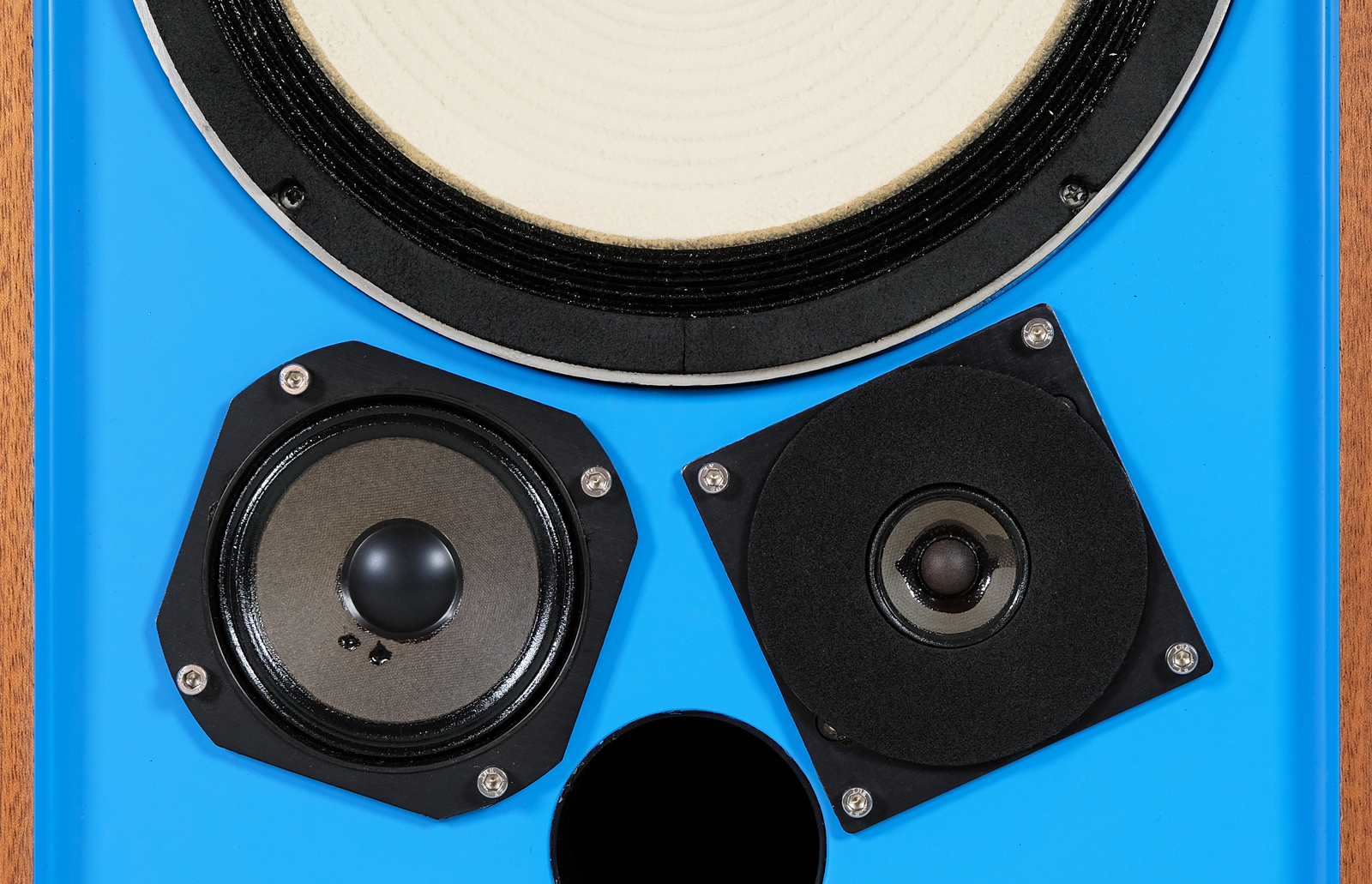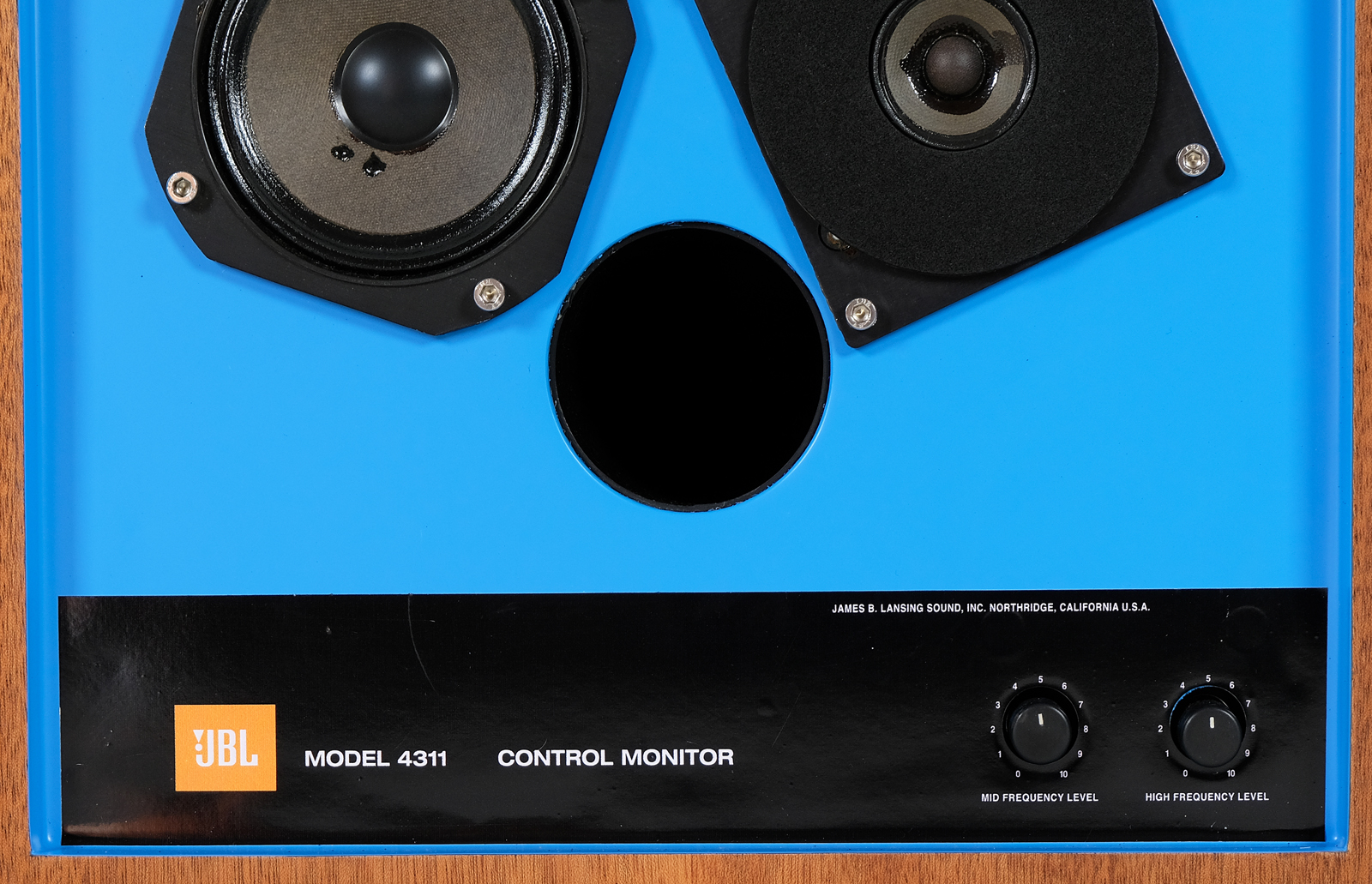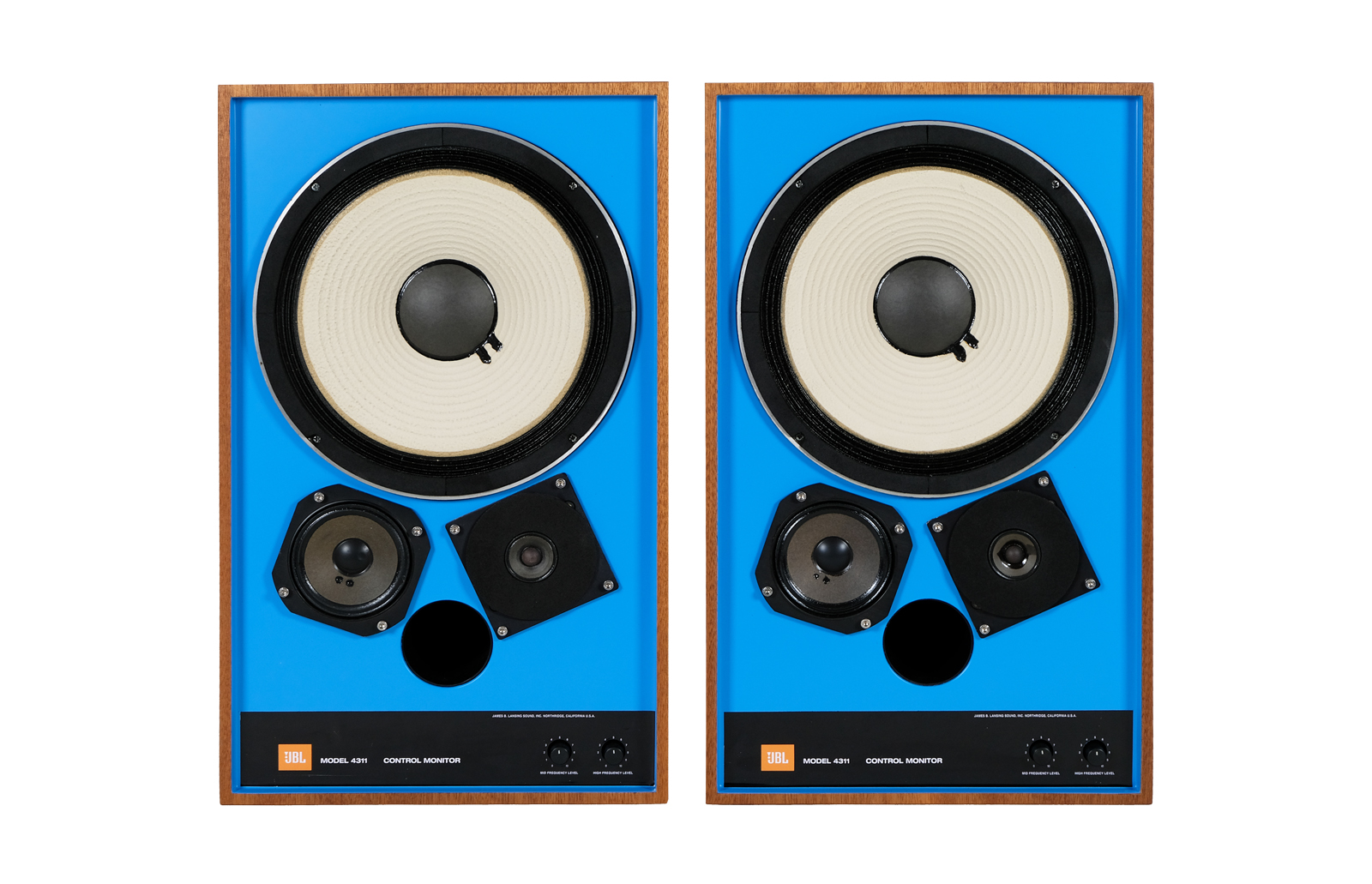 Meanwhile, the 4310 model was being tested, which lead to a conclusion that the unique uninterrupted treatment of flat deflectors did not provide as significant acoustic advantages as expected. Therefore, this feature was removed. In order to increase the dispersion of high frequencies, the tweeter was replaced with a different one with a smaller diameter. Also the crossover frequencies were modified to provide a smoother response. The version was given the number 4311 and was built with a conventional recessed baffle and with an H.F. radiator raised to the acoustic plane of the woofer and the front edge of the enclosure. It was recommended by JBL as “a smooth, powerful, broadband response in a compact packaging”.