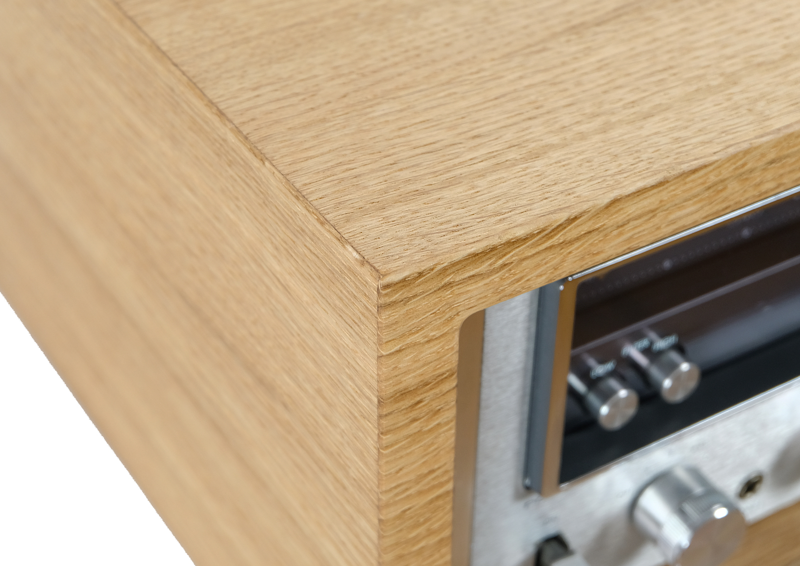 It is worth noting that the KR-6600 has a design that is very typical for the brand. Beautiful large and balanced tuning knobs. The silver front panel with a large black display has been interestingly highlighted in amber-green color, and the station selection indicator is marked by a strong red light compared to the “ball of fire” by its fans. The metal elements of the case were sandblasted and powder coated, fired at high temperature. The Oak Wood Case, made of oak wood, is included in the set. Wood finish is made with Chinese oil produced of natural oils. The wood feels nice to touch.