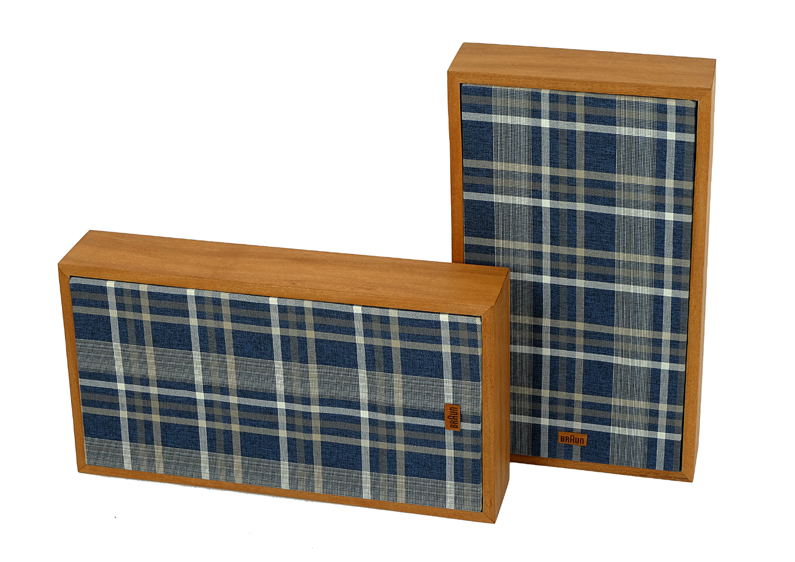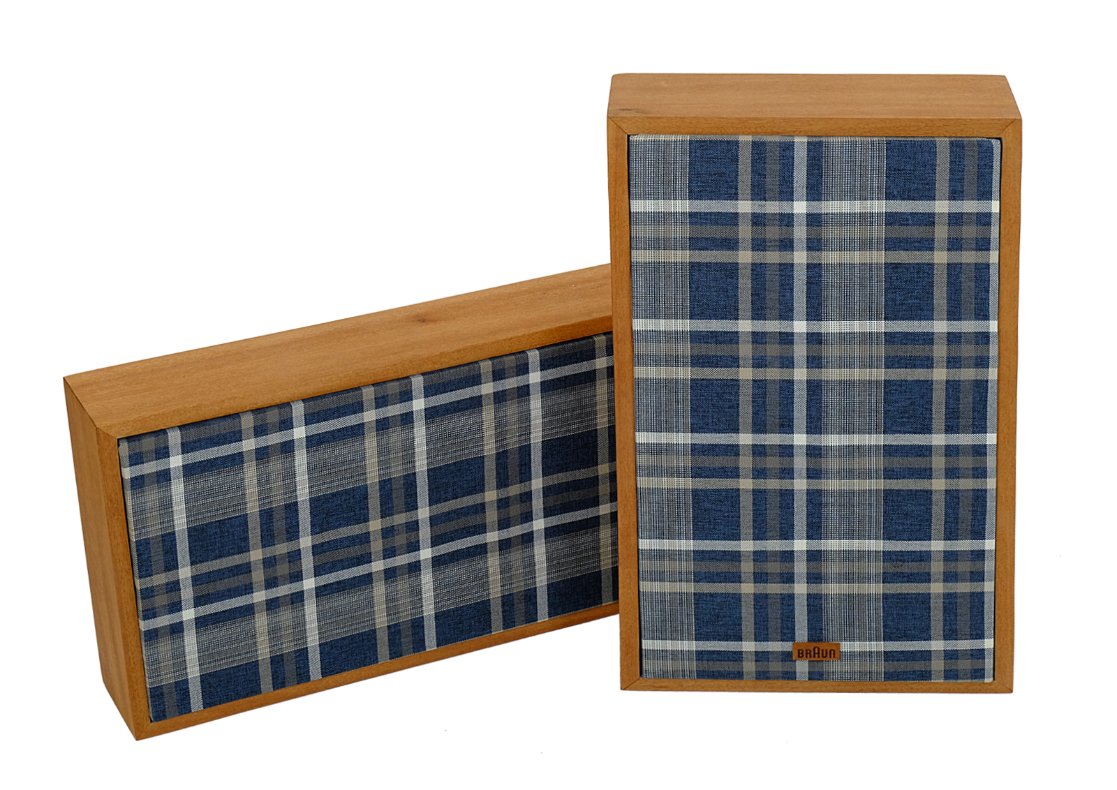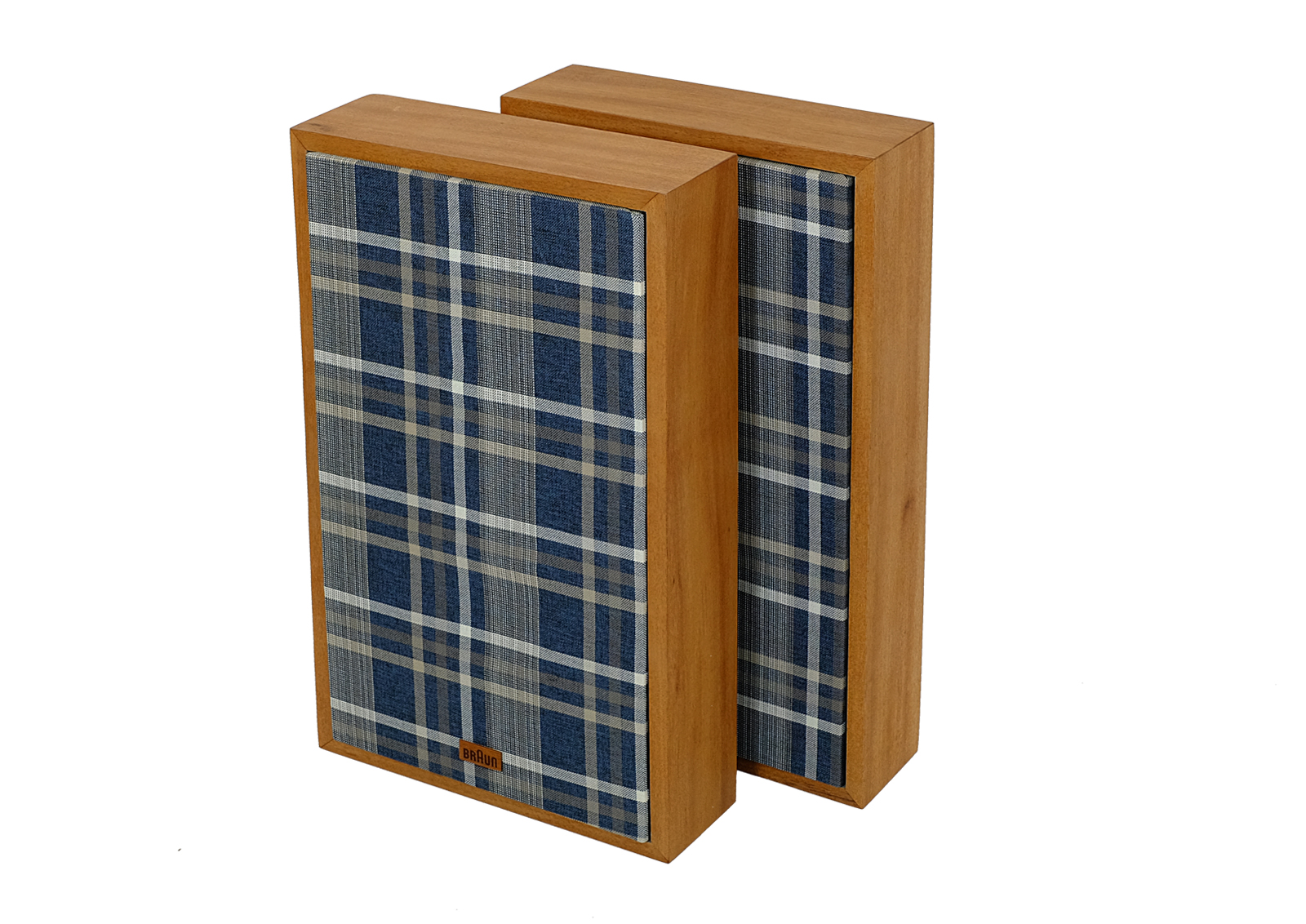 The cases have been completely revitalized. The boxes are made of the exotic doussie wood, front panel is made of Canadian maple wood. The finishing screws are high quality. The covers are made of high quality upholstery fabric. Wood finish is made with Chinese oil produced of natural oils. The wood feels nice to touch. There is a new Braun laser cut logo in exotic Jatobe wood.