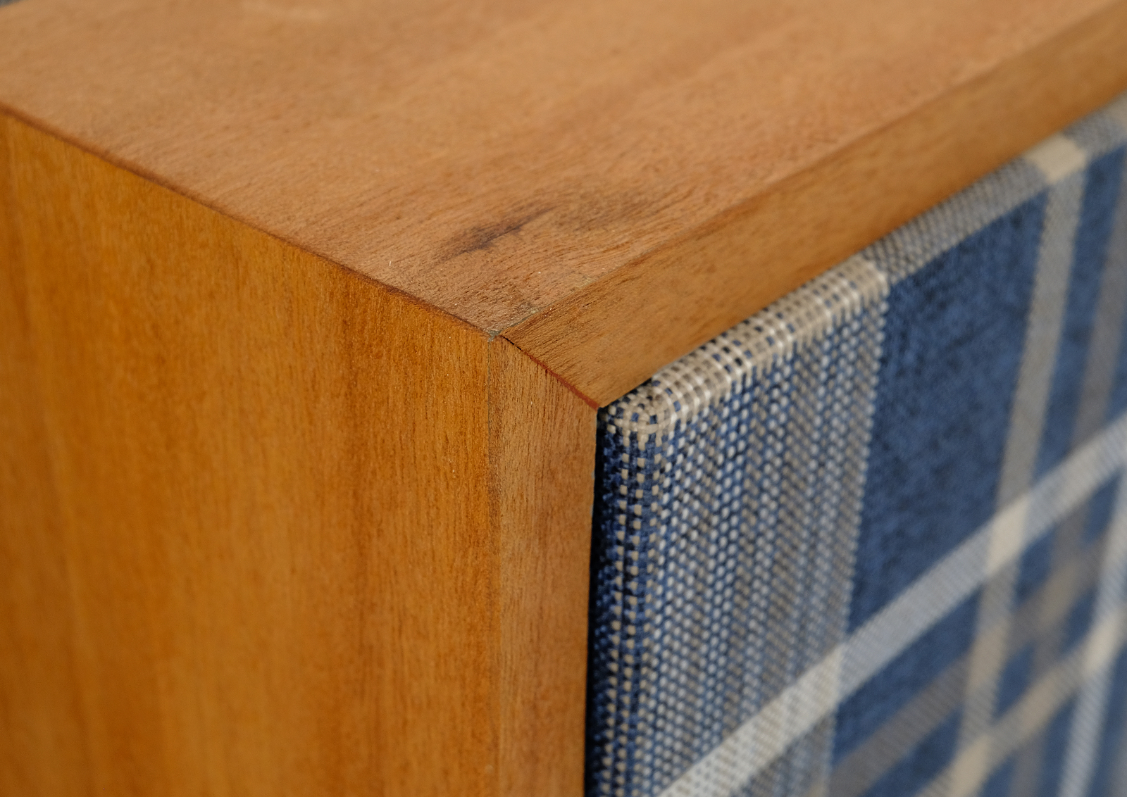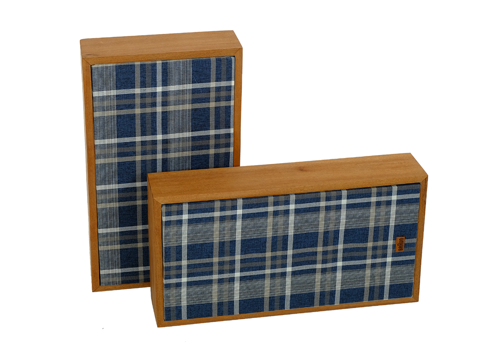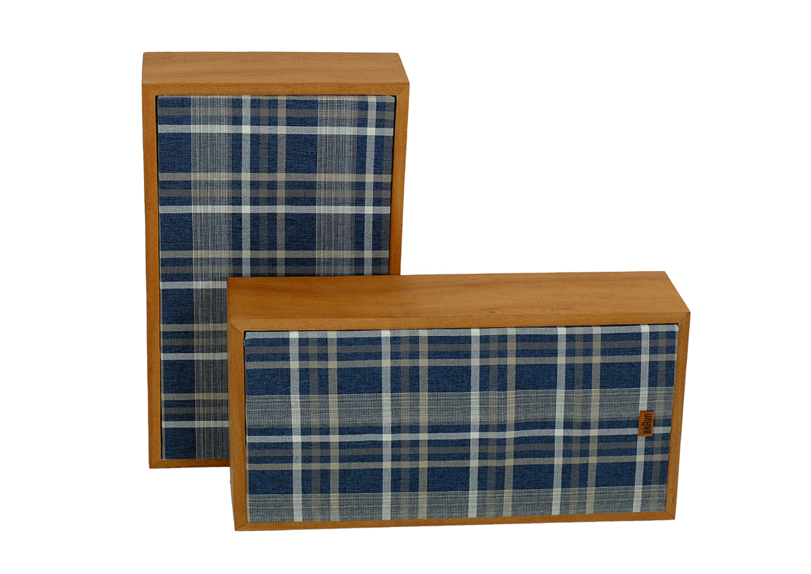 The cases have been completely revitalized. The boxes are made of the exotic doussie wood, front panel is made of Canadian maple wood. The finishing screws are high quality. The covers are made of high quality upholstery fabric. Wood finish is made with Chinese oil produced of natural oils. The wood feels nice to touch. There is a new Braun laser cut logo in exotic Jatobe wood.