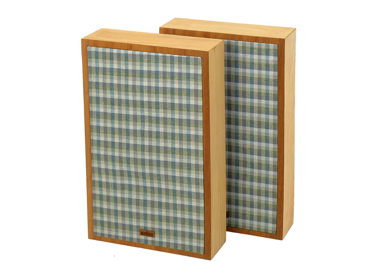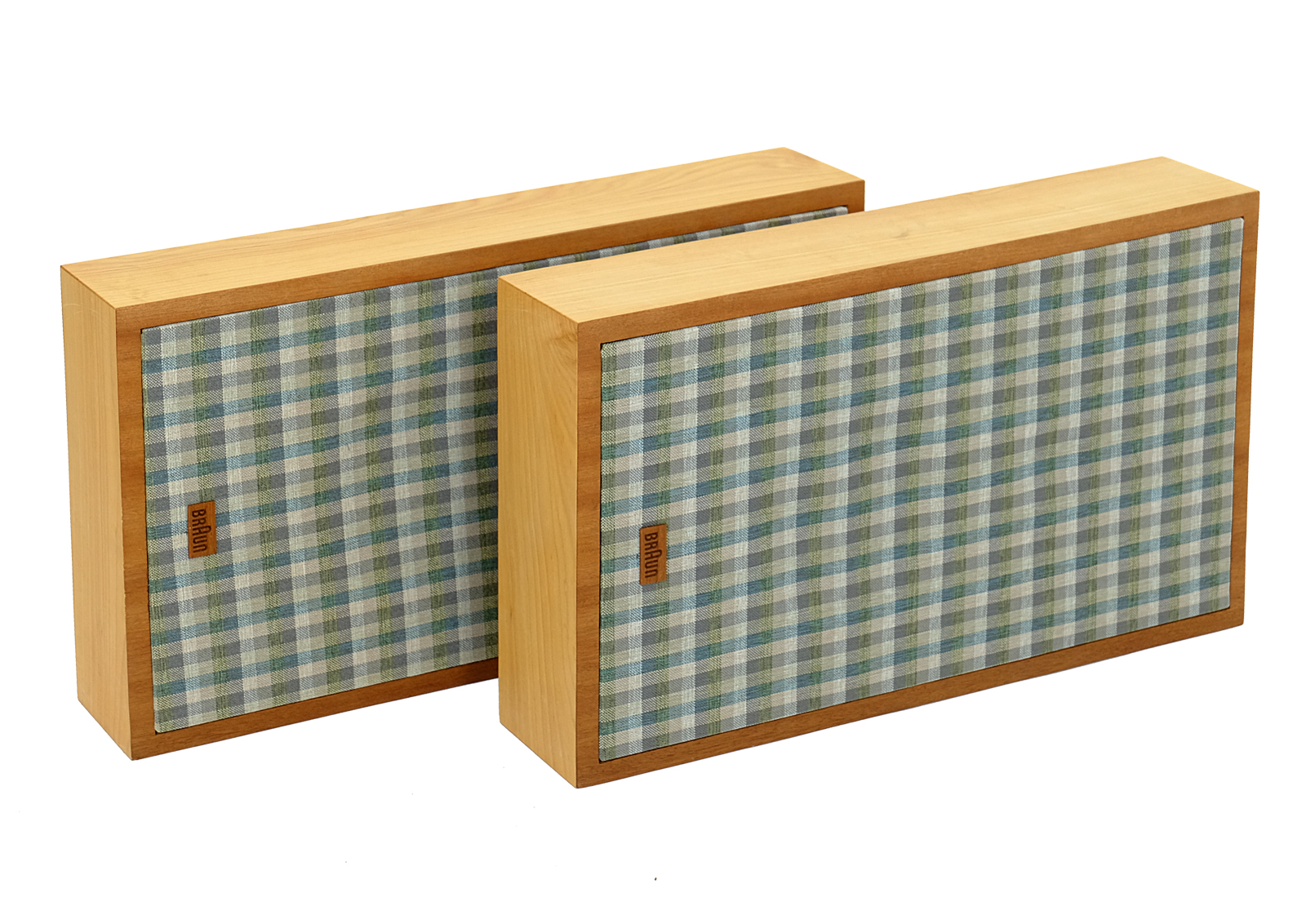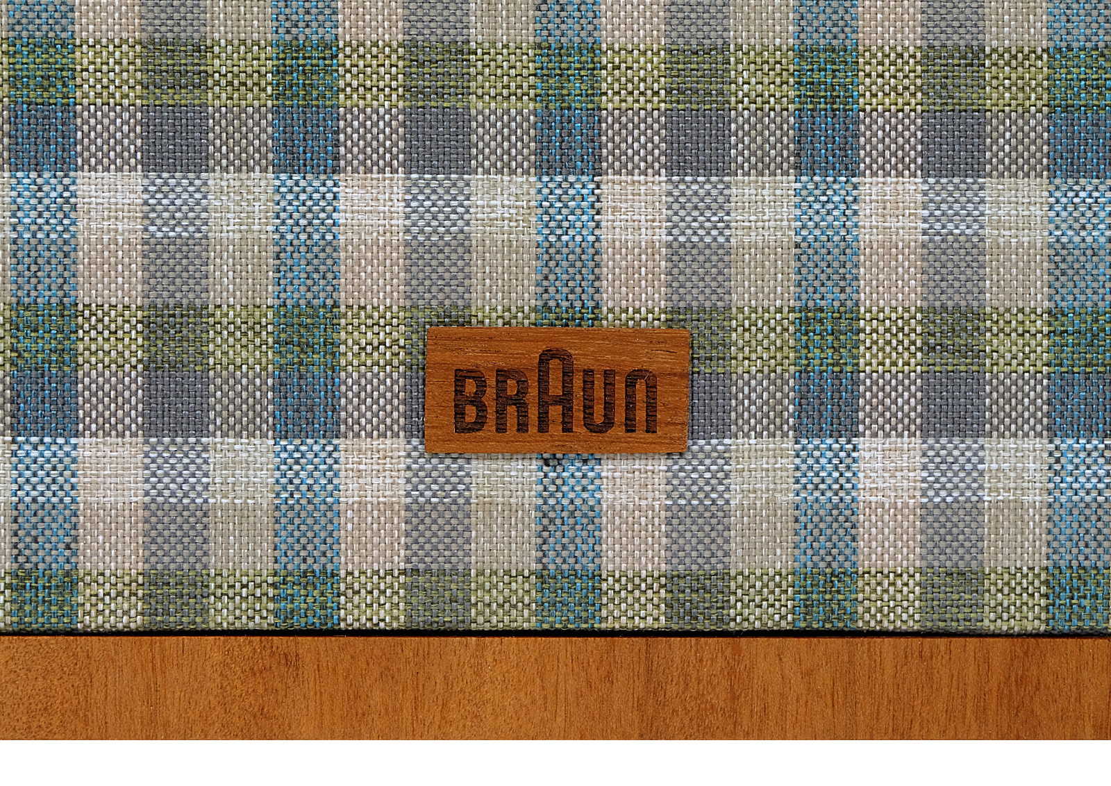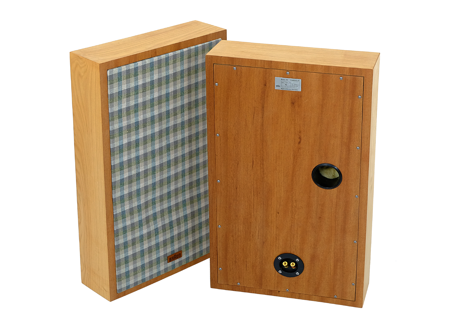 The cases have been completely revitalized. Front and real panel are made of the exotic doussie wood, the res is made of maple wood. The finishing screws are high quality. The covers are made of high quality upholstery fabric. Wood finish is made with Chinese oil produced of natural oils. The wood feels nice to touch. There is a new Braun laser cut logo in exotic Jatobe wood.