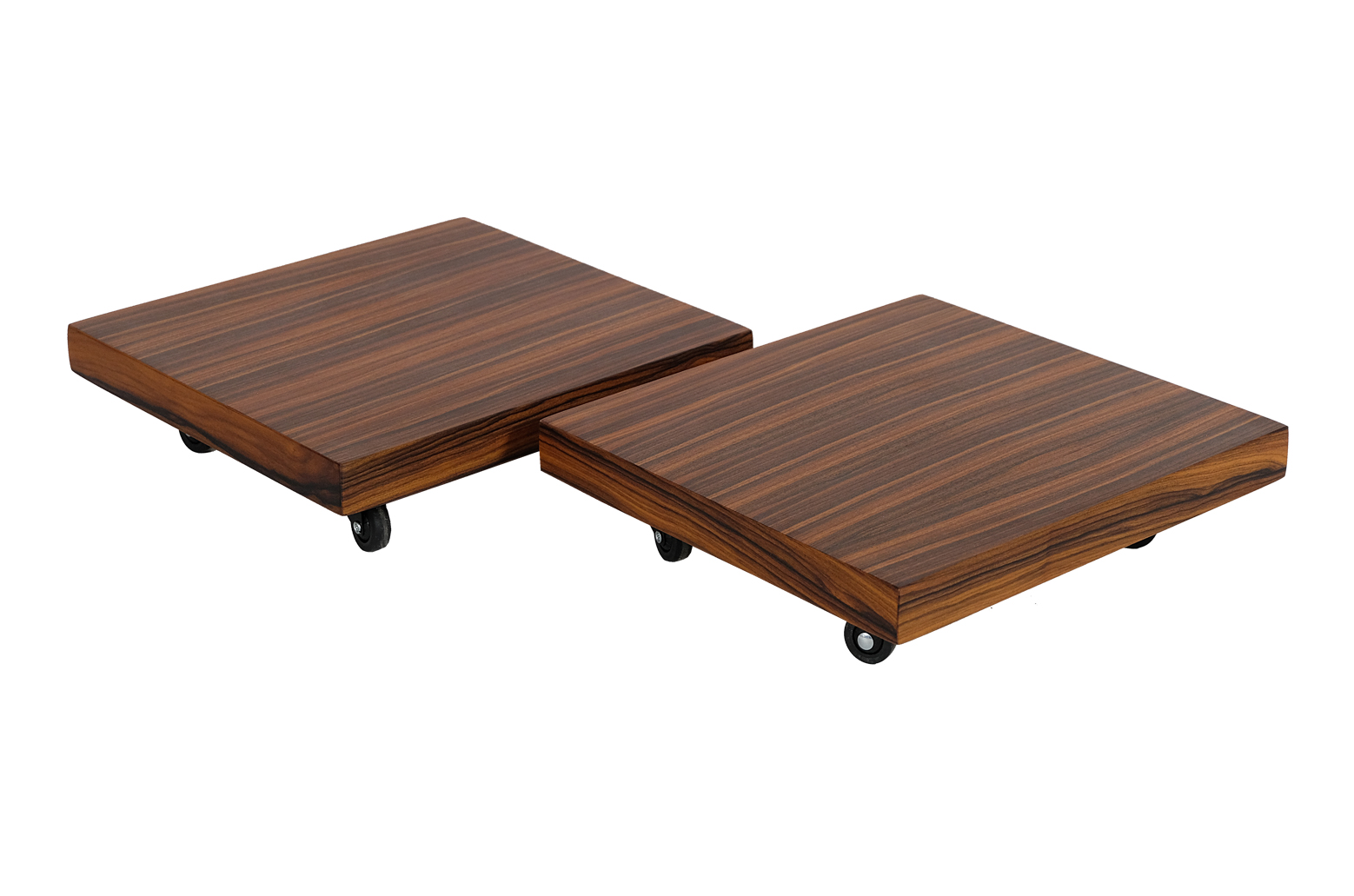 Mobile speakers platform is an elegant, high quality stand for arranging and moving heavier models of floor-standing loudspeakers. This project uses one of the most beautiful and precious types of decorative wood – rosewood. It has been finished with Chinese oil produced from natural oils and natural turpentine-based beeswax. As a result, the wood is well protected and its original structure and hue were emphasised. The platform is also equipped with rubber swivel wheels with metal bearings and a brake.