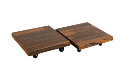 Mobile speakers platform is an elegant, high quality stand for arranging and moving heavier models of floor-standing loudspeakers. This project uses one of the most beautiful and precious types of decorative wood – rosewood. It has been finished with Chinese oil produced from natural oils and natural turpentine-based beeswax. As a result, the wood is well protected and its original structure and hue were emphasised. The platform is also equipped with rubber swivel wheels with metal bearings and a brake.