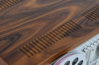 The presented version of RT 707 is a model in a wood enclosure. The new wooden enclosure was built from scratch based on original designs from the 70s. Rosewood wood was used. The wood finish is Chinese oil produced from natural oils and turpentine-based beeswax.