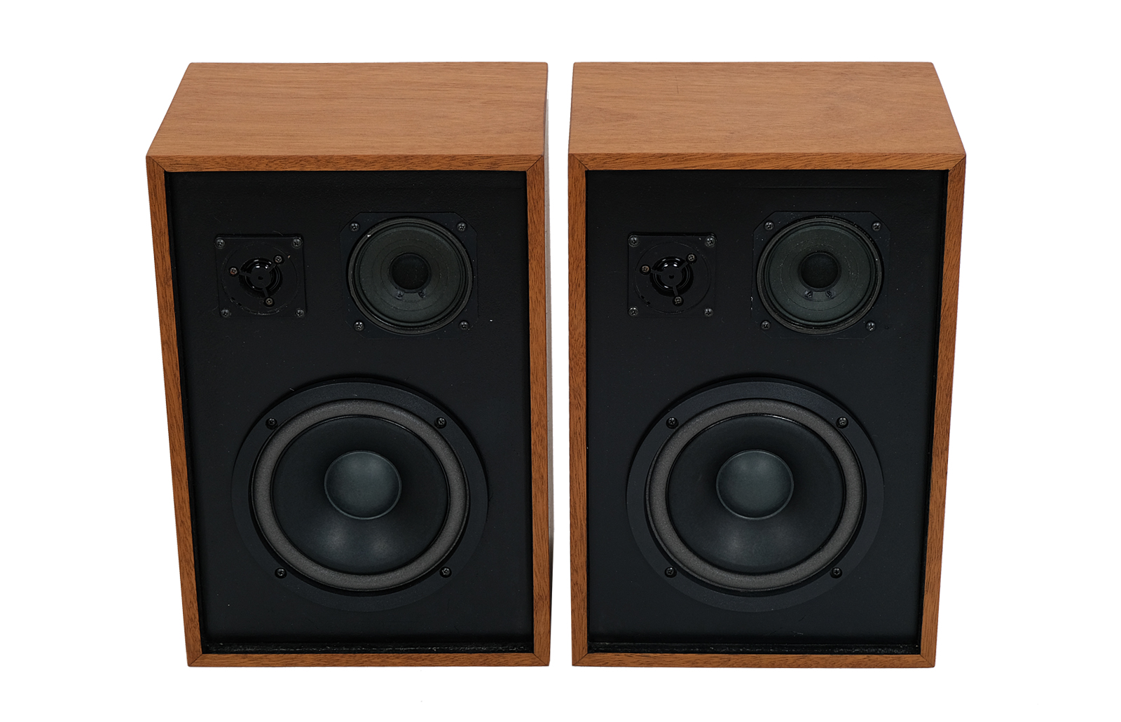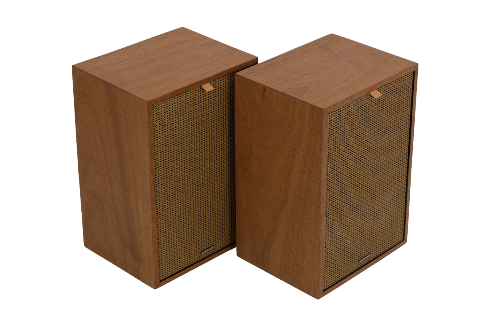 The cases have been fully revitalised. Exotic acajou wood gives the speakers the additional charm. The white membranes give the set their smart and elegant look. The wood has been treated with Chinese natural oil, smooth to touch. Handmade rattan grilles also treated with Chinese natural oil.