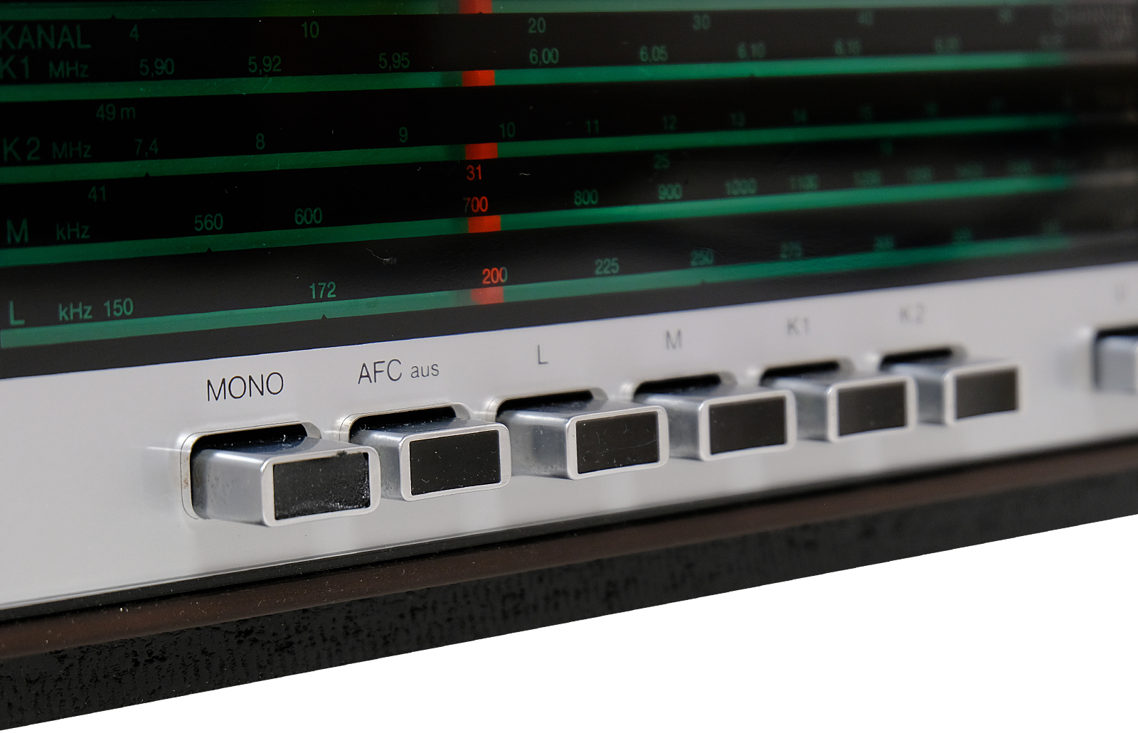 The front panel is made of aluminum. The scale – beautifully backlit in green, does not require re-tuning.