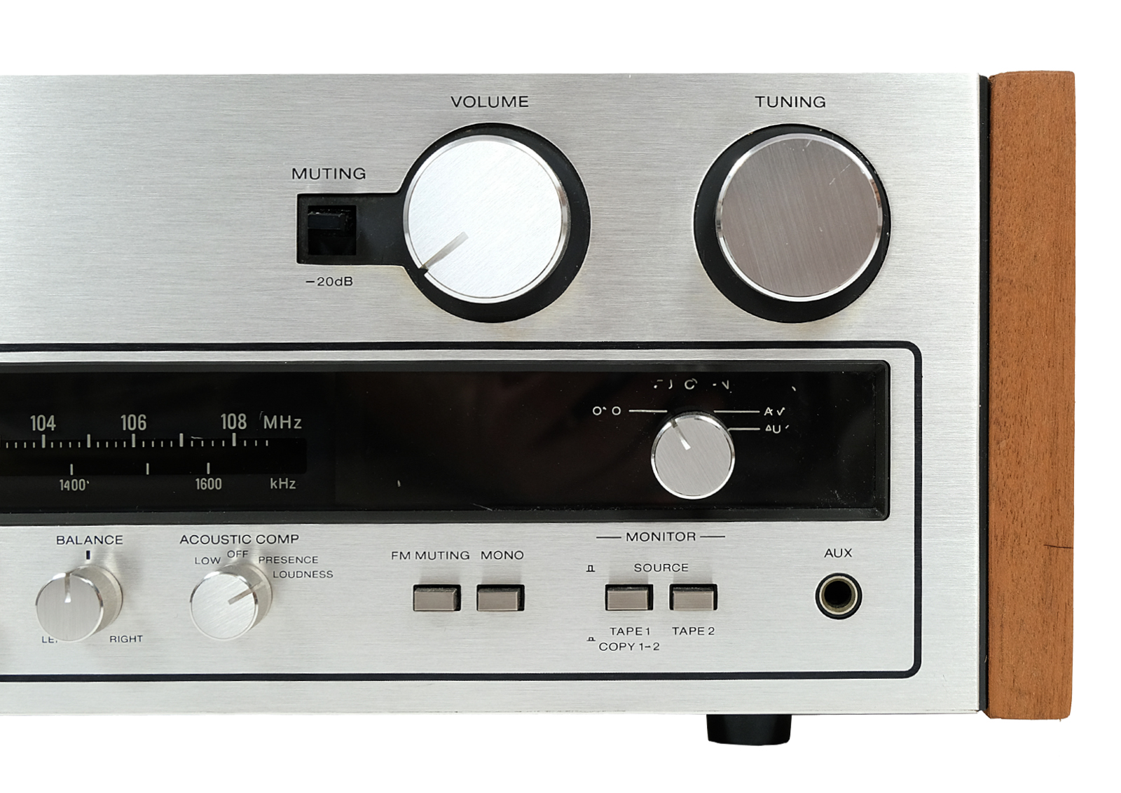 The case has been completely revitalized, potentiometers are in perfect condition. The metal elements of the case were sandblasted and powder coated, fired at high temperature. The new side boards are made of the exotic doussie wood make it look elegant and distinguished. The front panel is made of aluminium. The scale is highlighted in yellow, the device does not require reprogramming.