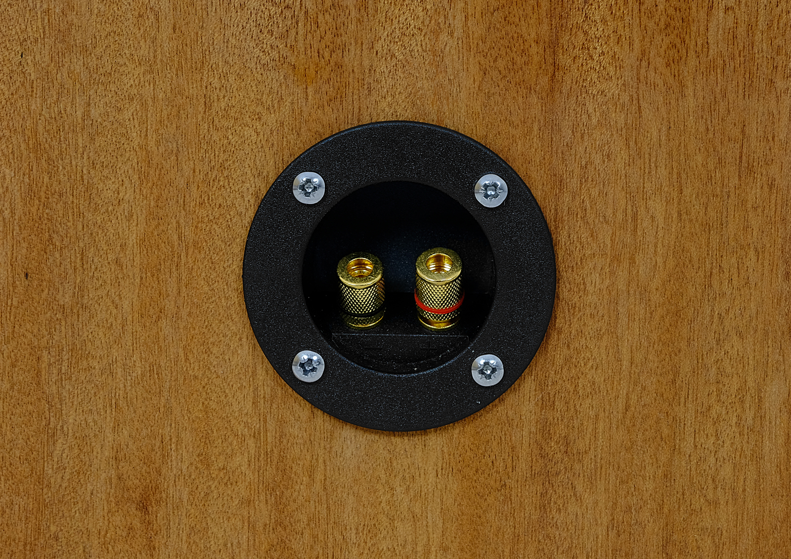 The enclosures have been completely revitalized. The front panel is made of exotic sapeli wood, the rest is made of doussie. High quality finishing screws. Speaker grilles painted with high quality car paint. The wood finish is Chinese oil produced from natural oils. The wood is very pleasant to the touch.