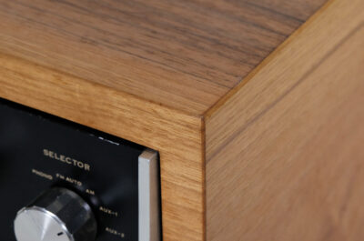 Nowa, drewniana obudowa została zrewitalizowana od podstaw w oparciu o oryginalne konstrukcje z lat 70tych. Zastosowane drewno to orzech włoski. Wykończenie drewna to olej chiński produkowany na bazie naturalnych olei, oraz naturalny wosk pszczeli na bazie terpentyny. Potencjometry w idealnym stanie. Urządzenie po całkowitym przeglądzie i serwisie, zostało wyposażone w nowe nóżki wykonane z aluminium.
