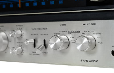 SA 5600X to kwadrofoniczny amplituner z pierwszej połowy lat 70tych o naturalnym, miękkim i ciepłym brzmieniu. Oprócz pięknego dizajnu charakterystycznego dla swojej epoki, model ten wyróżnia się konstrukcją wyposażoną w podwójną końcówkę mocy. Dzięki temu żadnemu z dwóch zestawów głośników, które można podpiąć, aby uzyskać efekt kwadrofonii, nie zabraknie mocy. Ciekawym rozwiązaniem są dwie regulacje głośności – na tył i na przód, czyli oddzielnie na każdą parę kolumn.