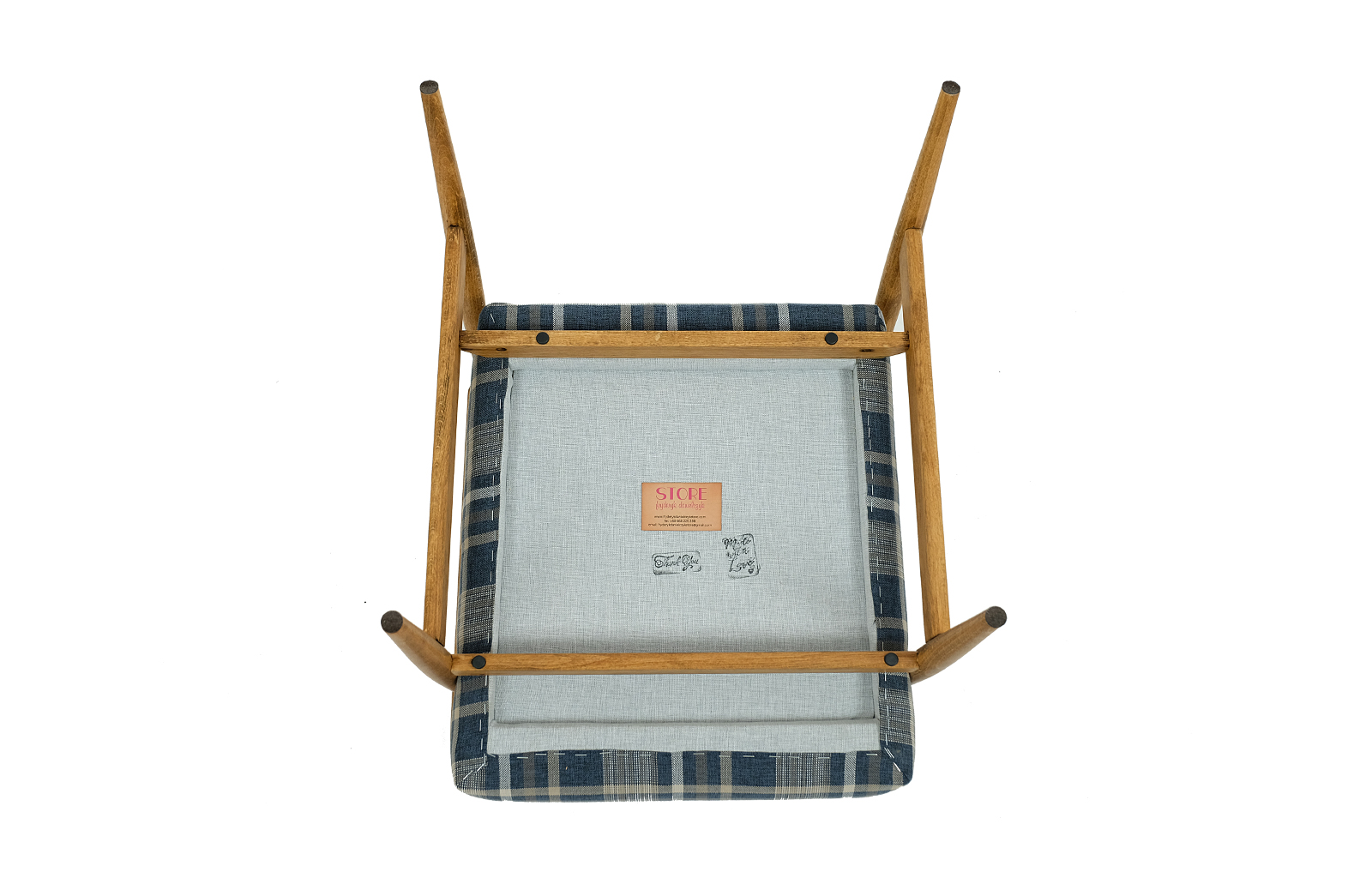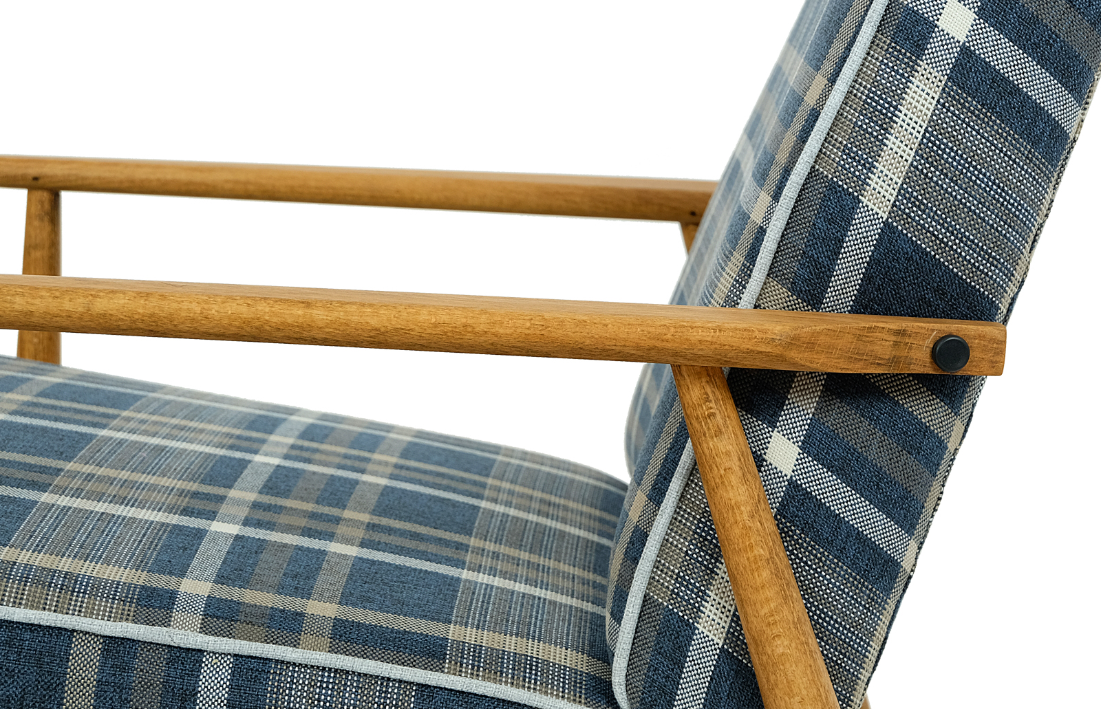 Fotel został całkowicie rozebrany, drewno oczyszczone ze starych powłok lakierniczych, sklejony ponownie, zabezpieczony olejem na bazie naturalnych olei chińskich, przyjaznym dla środowiska. Drewno bukowe. Nowa tapicerka, wymieniona gąbka, pasy, fizelina. Ręcznie szyty. Bardzo dobrej jakości tkanina, odporność na ścieranie 30 000 suwów. Nowe metalowe śruby. Szkielet wewnątrz oczyszczony dokładnie papierem. Kultowy model Liska w nowej odsłonie.