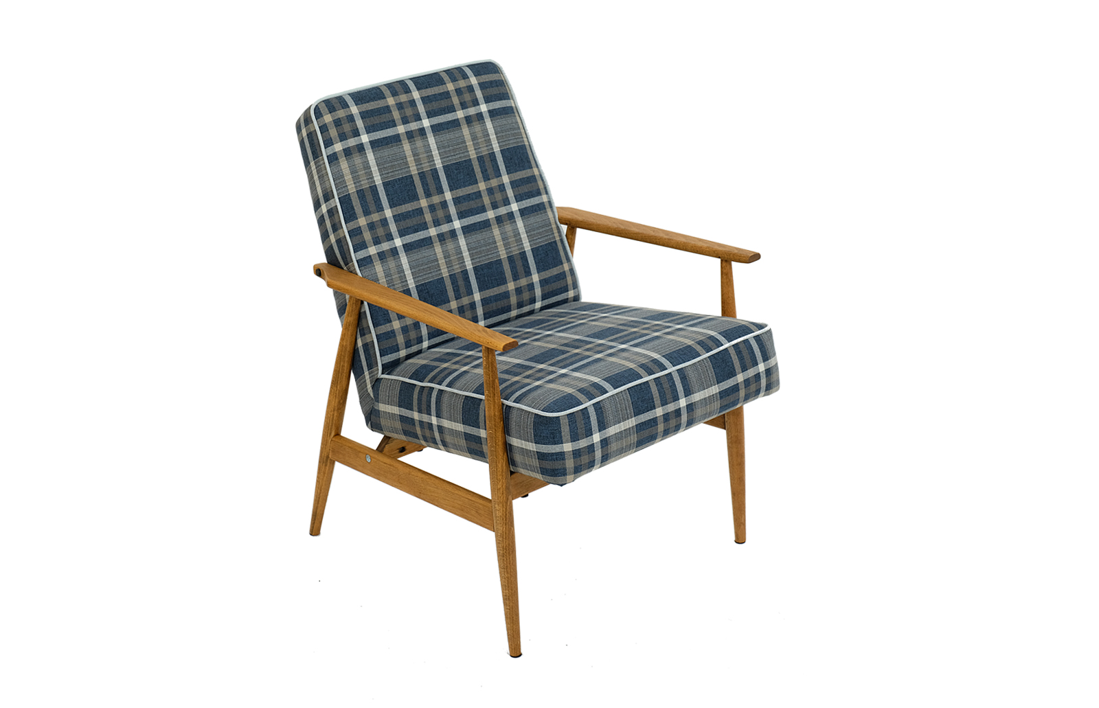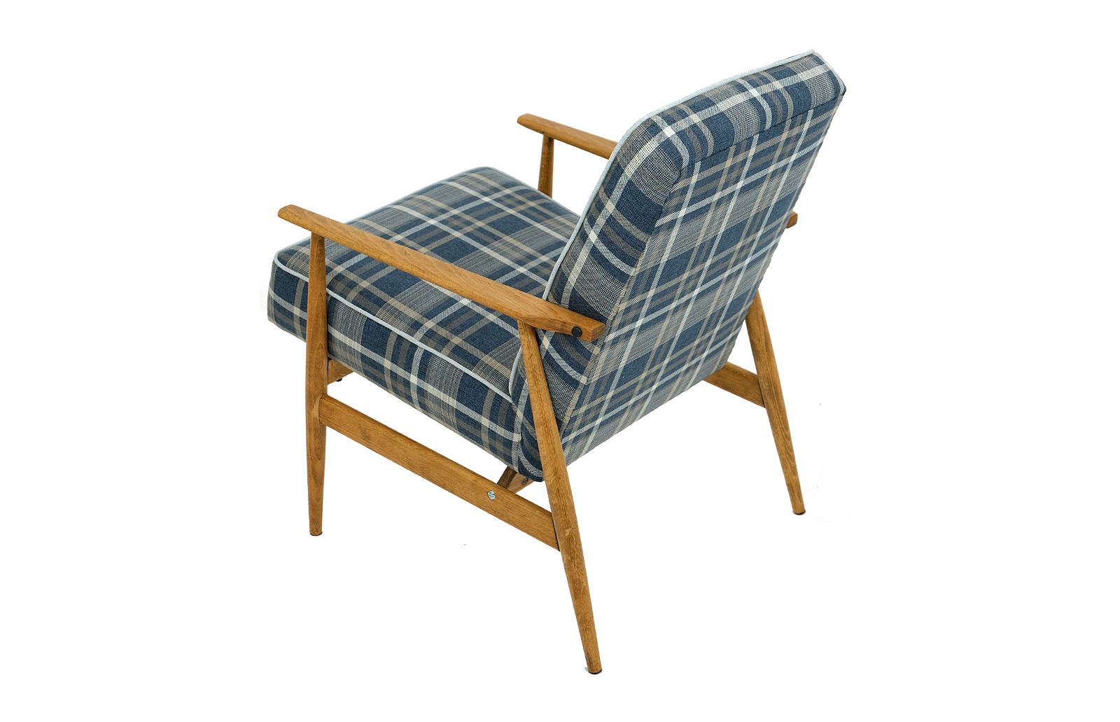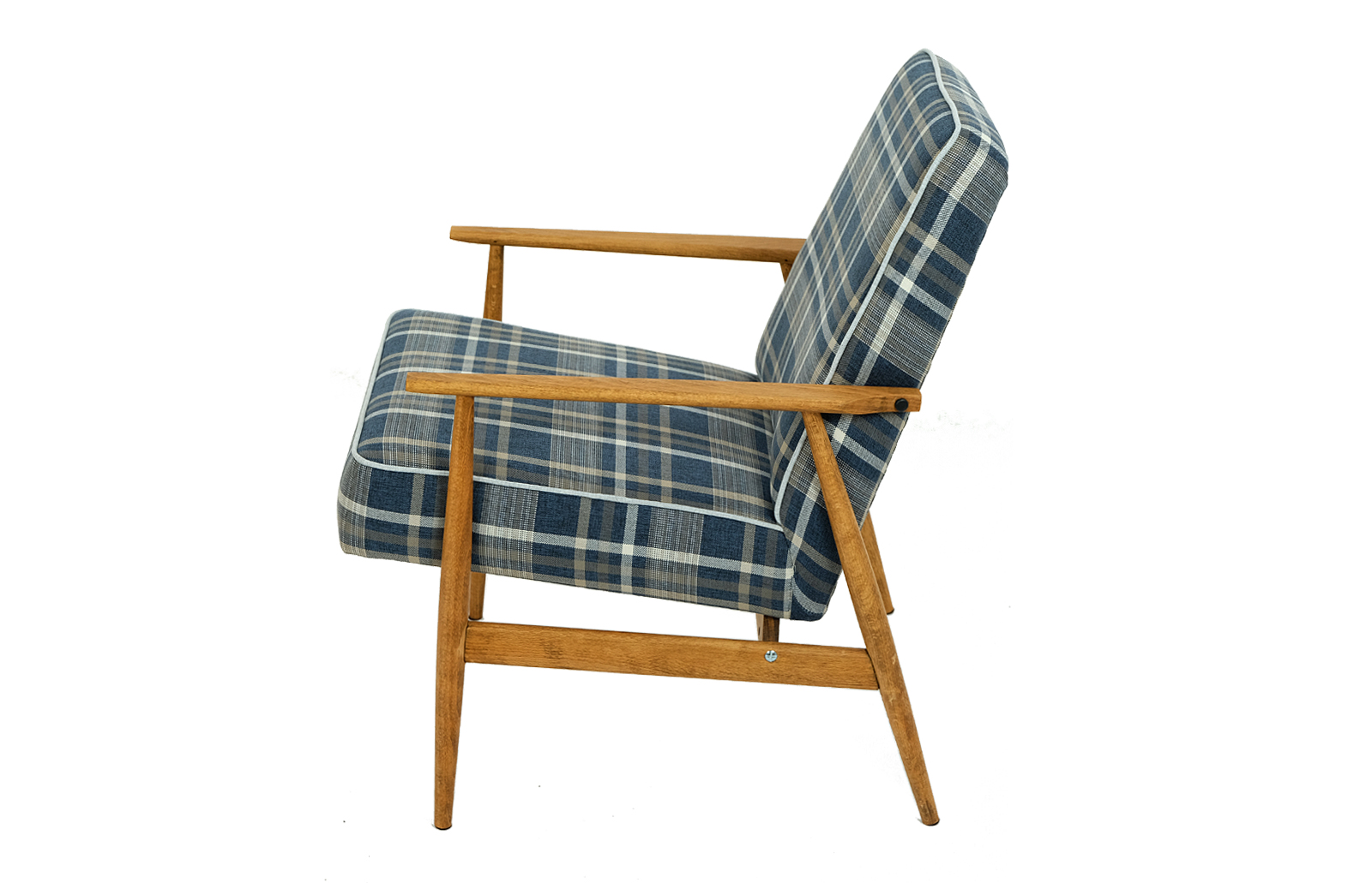 Fotel klubowy PRL, Lisek, wg projektu Henryka Lisa. Blue Jeans. Produkowany przez Dolnośląską Fabrykę Mebli w Świebodzicach, wg projektu Henryka Lisa, typ 300-190, zwany Liskiem. Po całkowitej rewitalizacji.