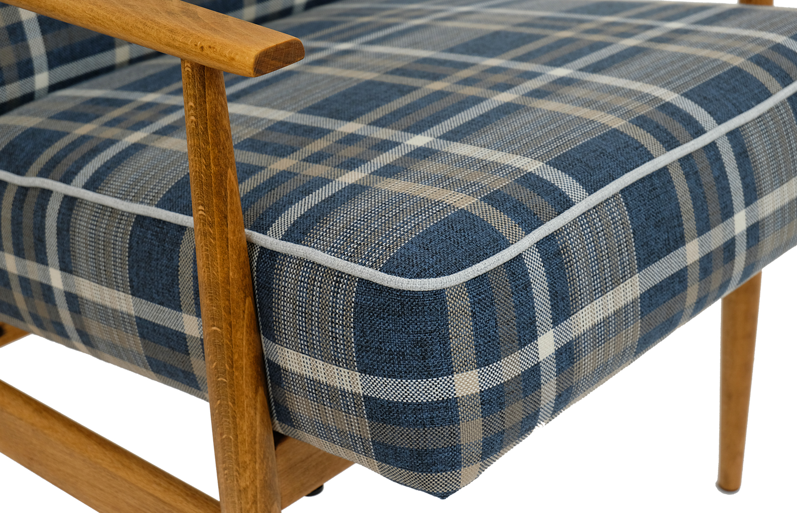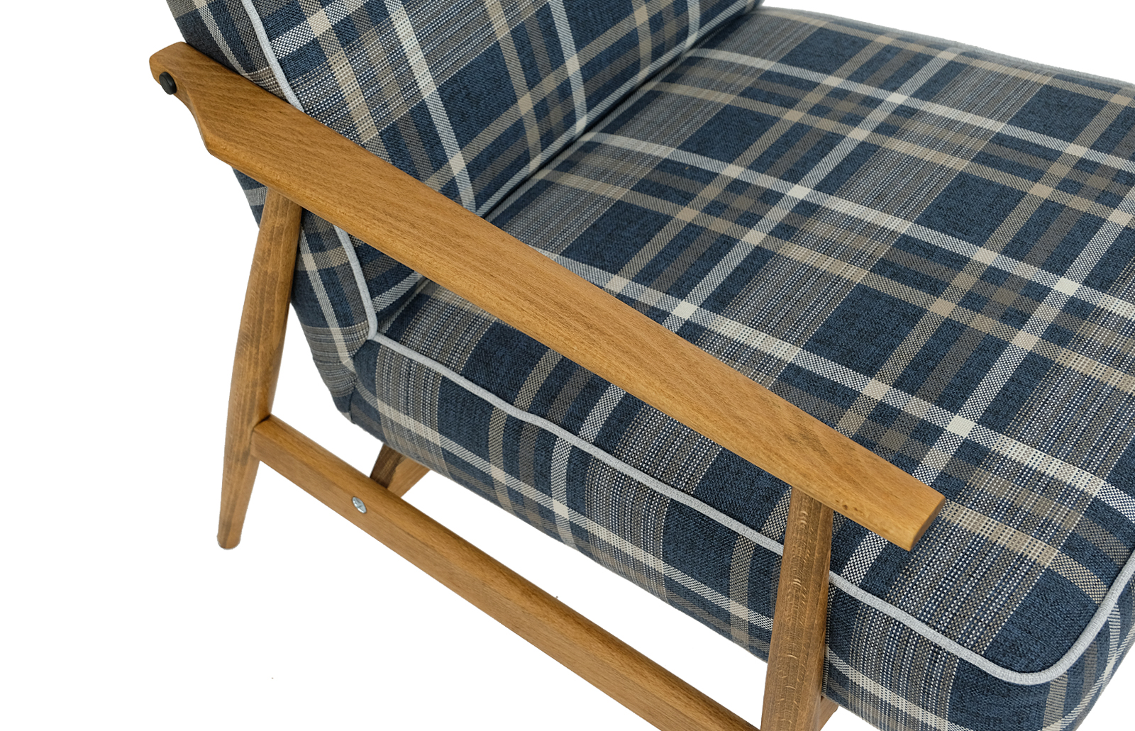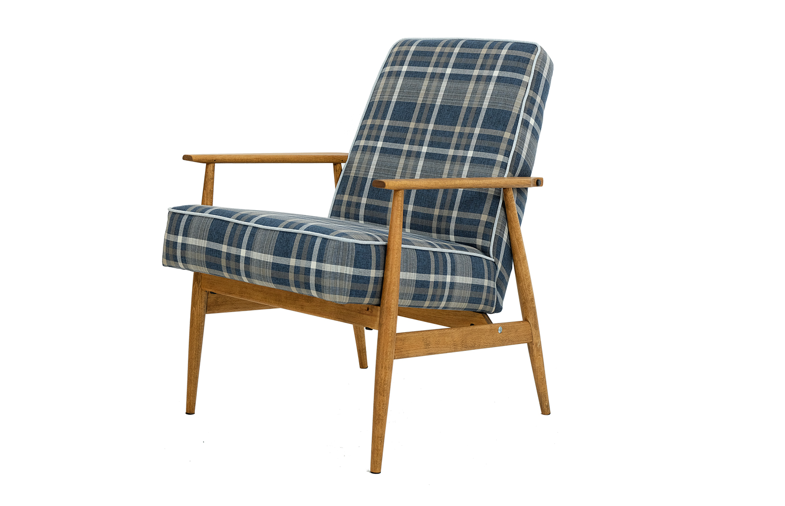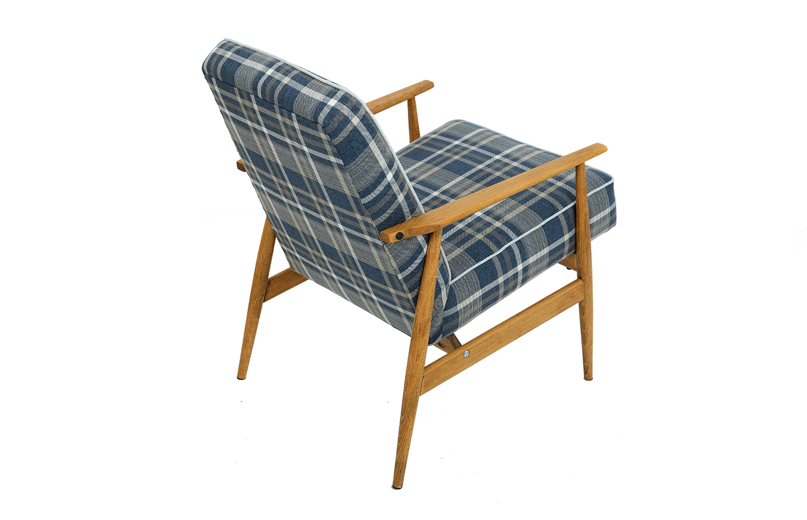 Fotel klubowy PRL, Lisek, wg projektu Henryka Lisa. Blue Jeans. Produkowany przez Dolnośląską Fabrykę Mebli w Świebodzicach, wg projektu Henryka Lisa, typ 300-190, zwany Liskiem. Po całkowitej rewitalizacji.