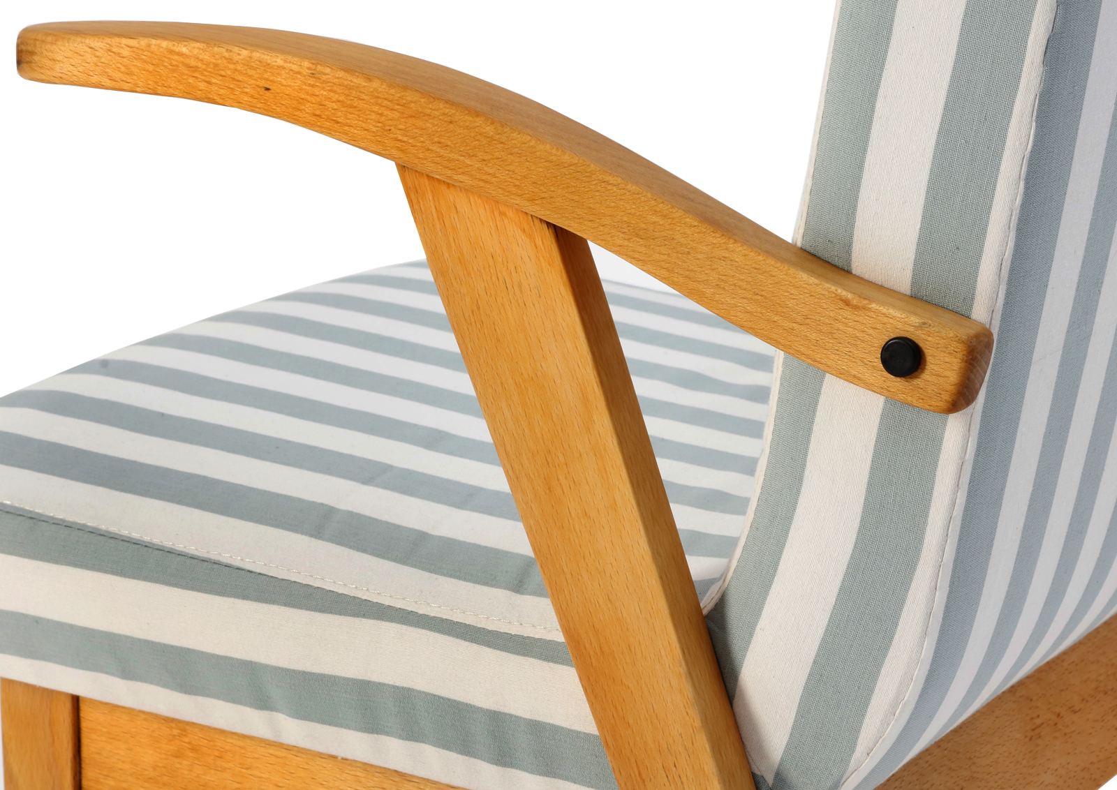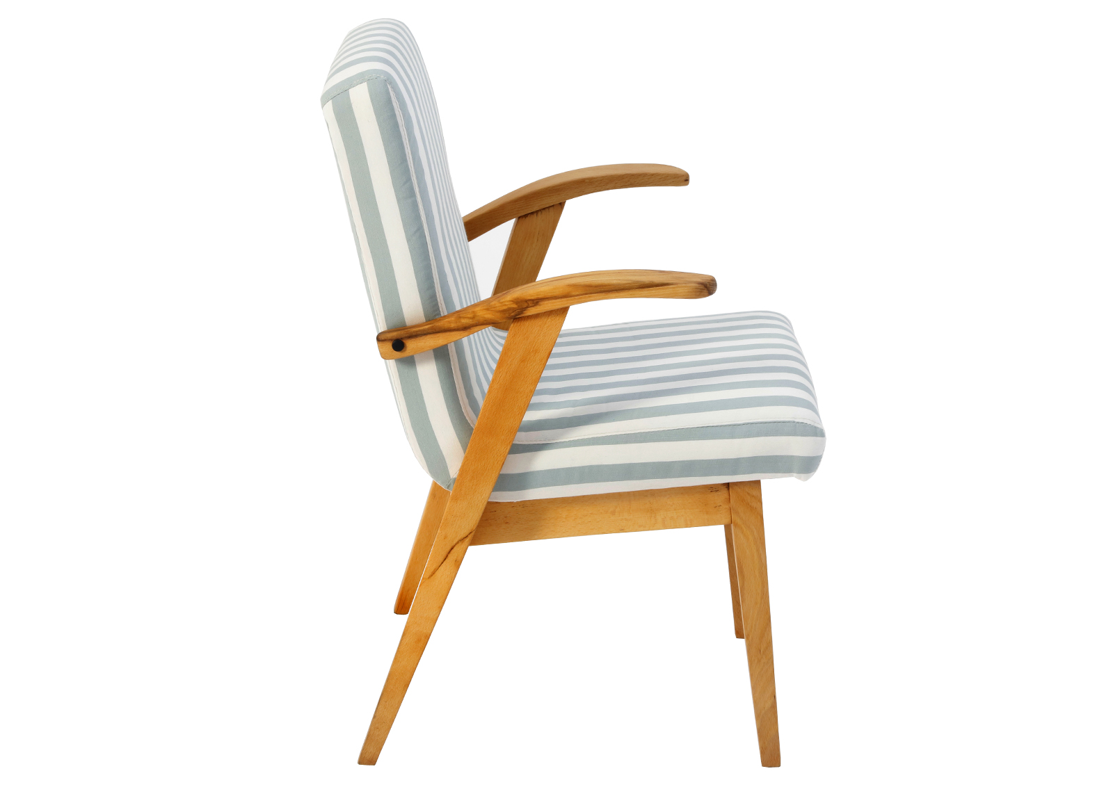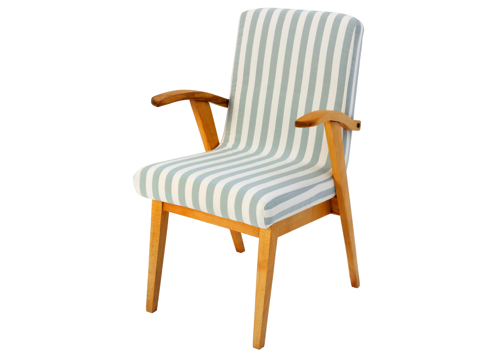 Fotel Typ 300-123 zaprojektowany został przez Mieczysława Puchałę w latach 50. Produkowany był w Bystrzyckich Zakładach Meblowych. Powstał w tym samym roku co typ 366 Chierowskiego, ale nie cieszył się aż taką popularnością. Zrobiony z drewna bukowego. Fotelik został całkowicie rozebrany, drewno oczyszczone ze starych powłok, ponownie sklejony, zabezpieczony olejem na bazie naturalnych olei chińskich, przyjaznym dla środowiska. Nowa tapicerka, wymieniona gąbka, pasy, fizelina. Ręcznie szyty. Dobrej jakości tkanina, odporność na ścieranie 20 000 suwów. Szkielet wewnątrz oczyszczony dokładnie papierem, zabezpieczony. Kultowy model fotela PRL.
