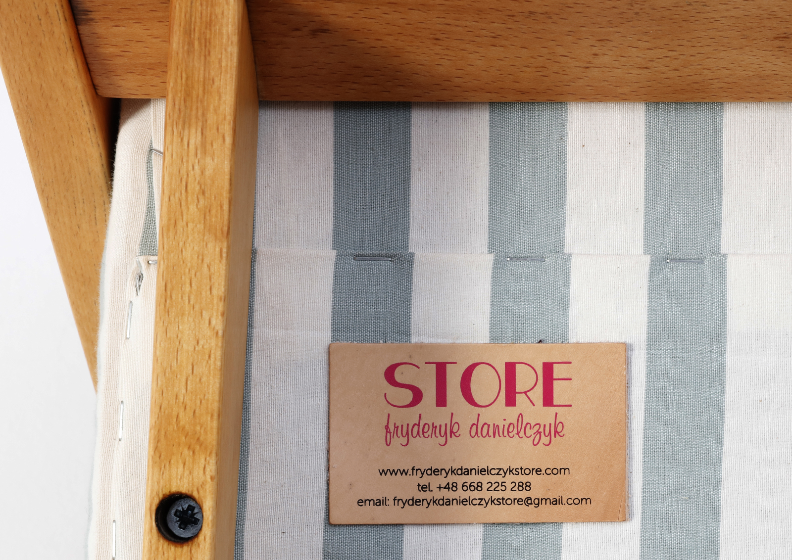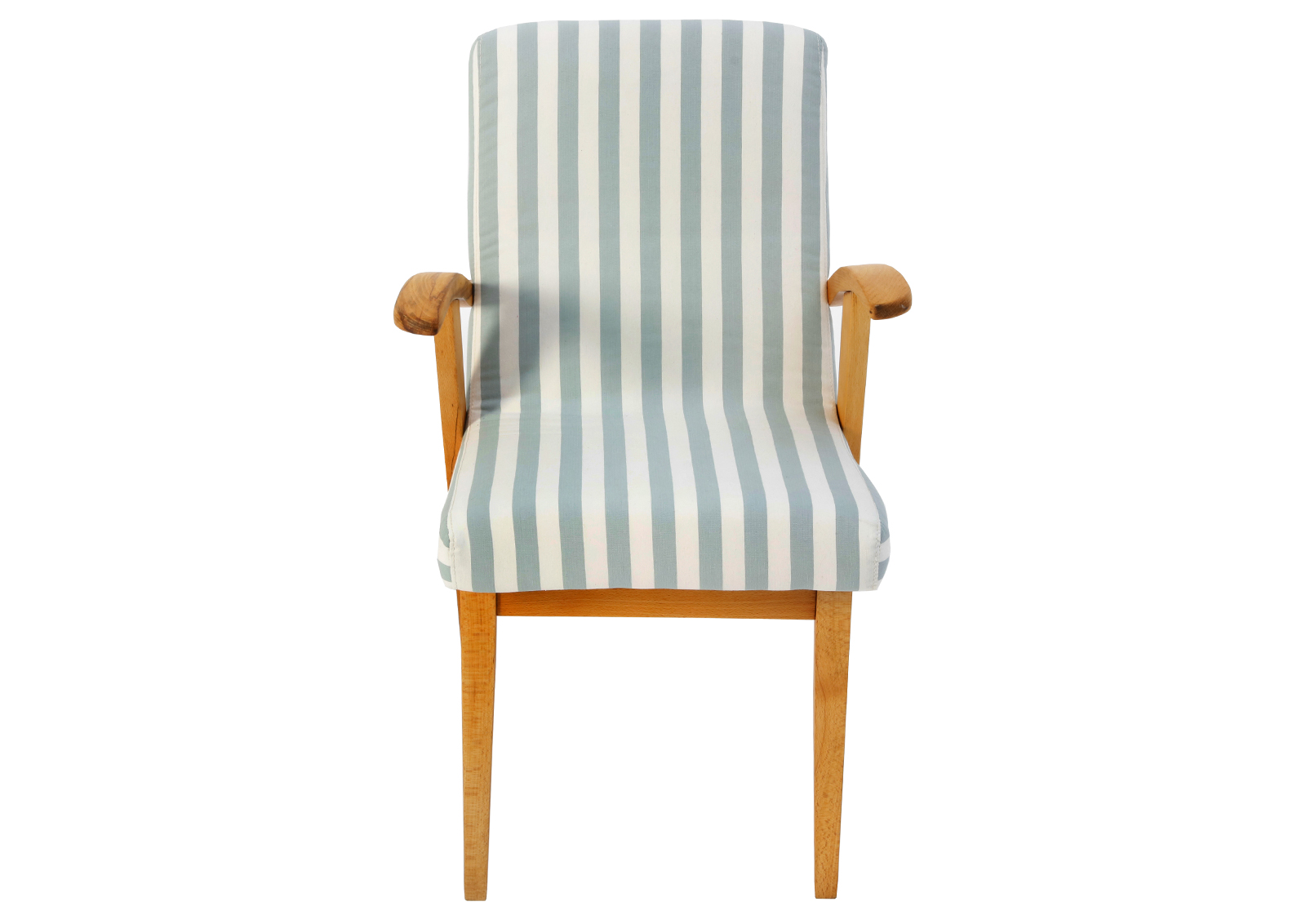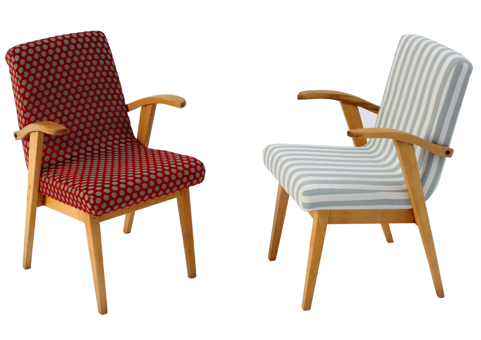 Fotel Typ 300-123 zaprojektowany został przez Mieczysława Puchałę w latach 50. Produkowany był w Bystrzyckich Zakładach Meblowych. Powstał w tym samym roku co typ 366 Chierowskiego, ale nie cieszył się aż taką popularnością. Zrobiony z drewna bukowego. Fotelik został całkowicie rozebrany, drewno oczyszczone ze starych powłok, ponownie sklejony, zabezpieczony olejem na bazie naturalnych olei chińskich, przyjaznym dla środowiska. Nowa tapicerka, wymieniona gąbka, pasy, fizelina. Ręcznie szyty. Dobrej jakości tkanina, odporność na ścieranie 20 000 suwów. Szkielet wewnątrz oczyszczony dokładnie papierem, zabezpieczony. Kultowy model fotela PRL.