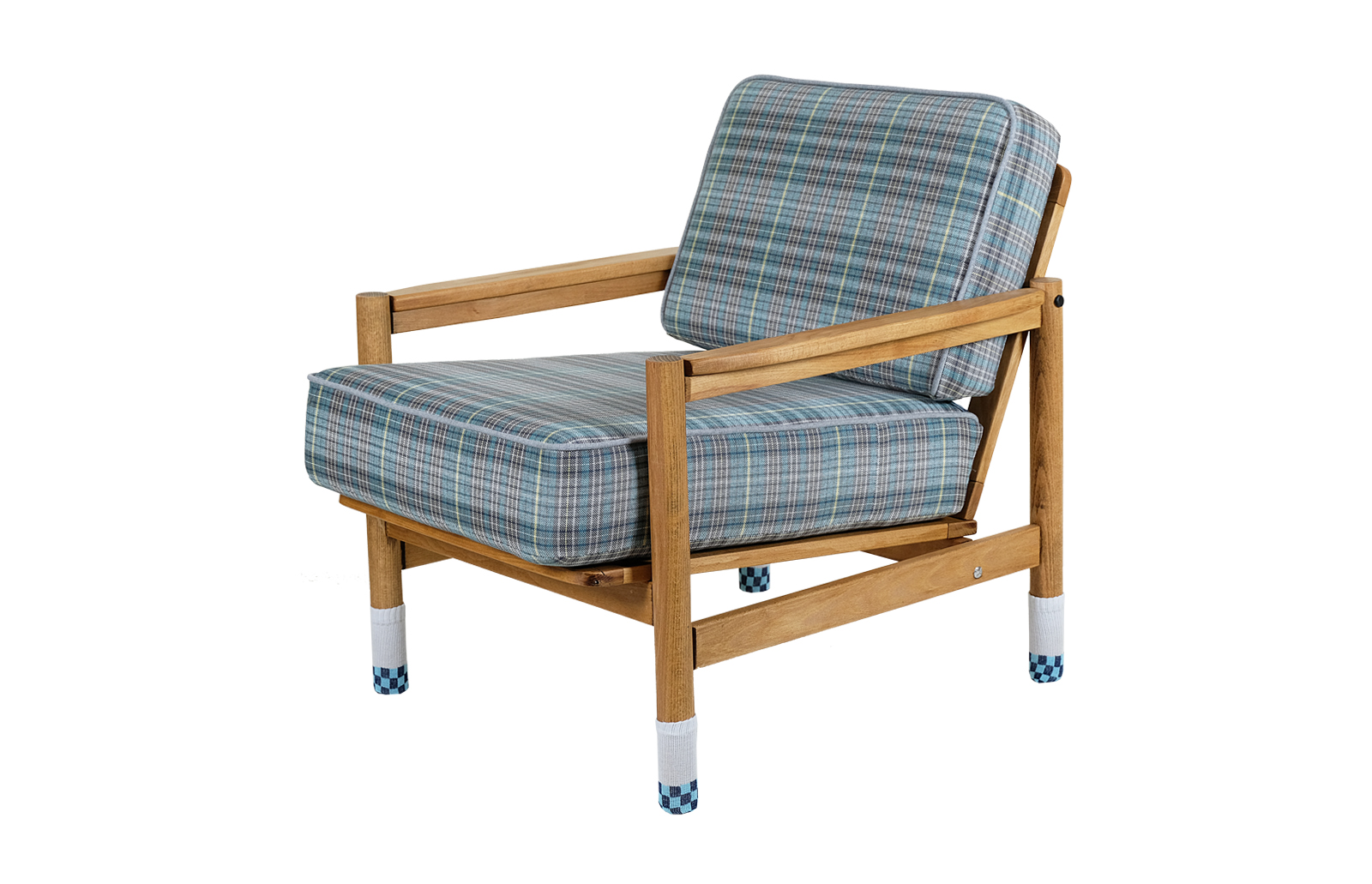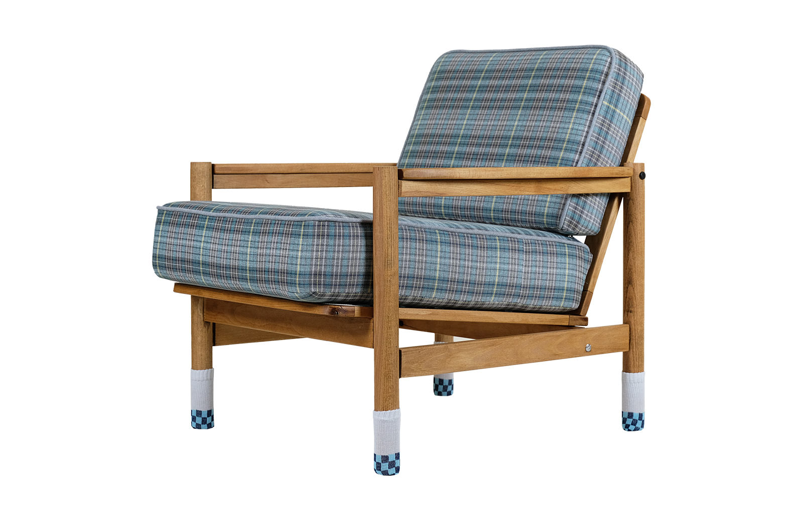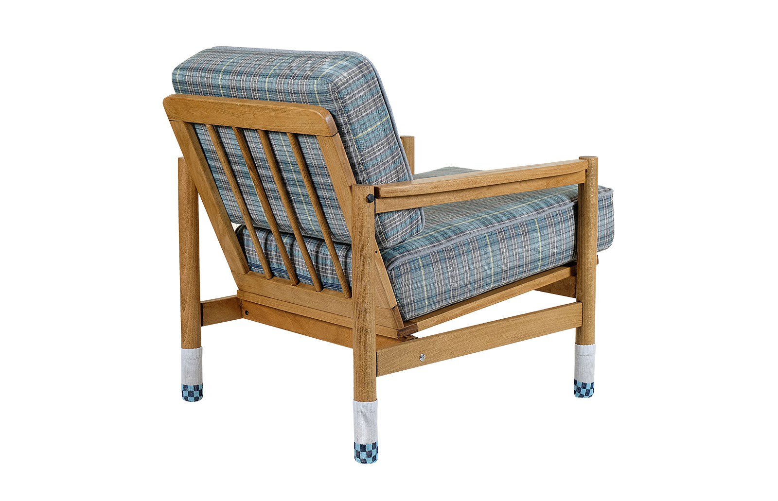 Nóżki fotela „ubrane” w ciepłe, bawełniane skarpetki.