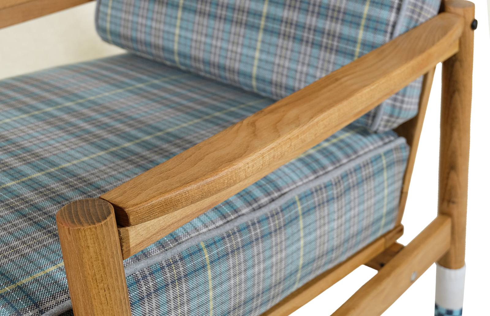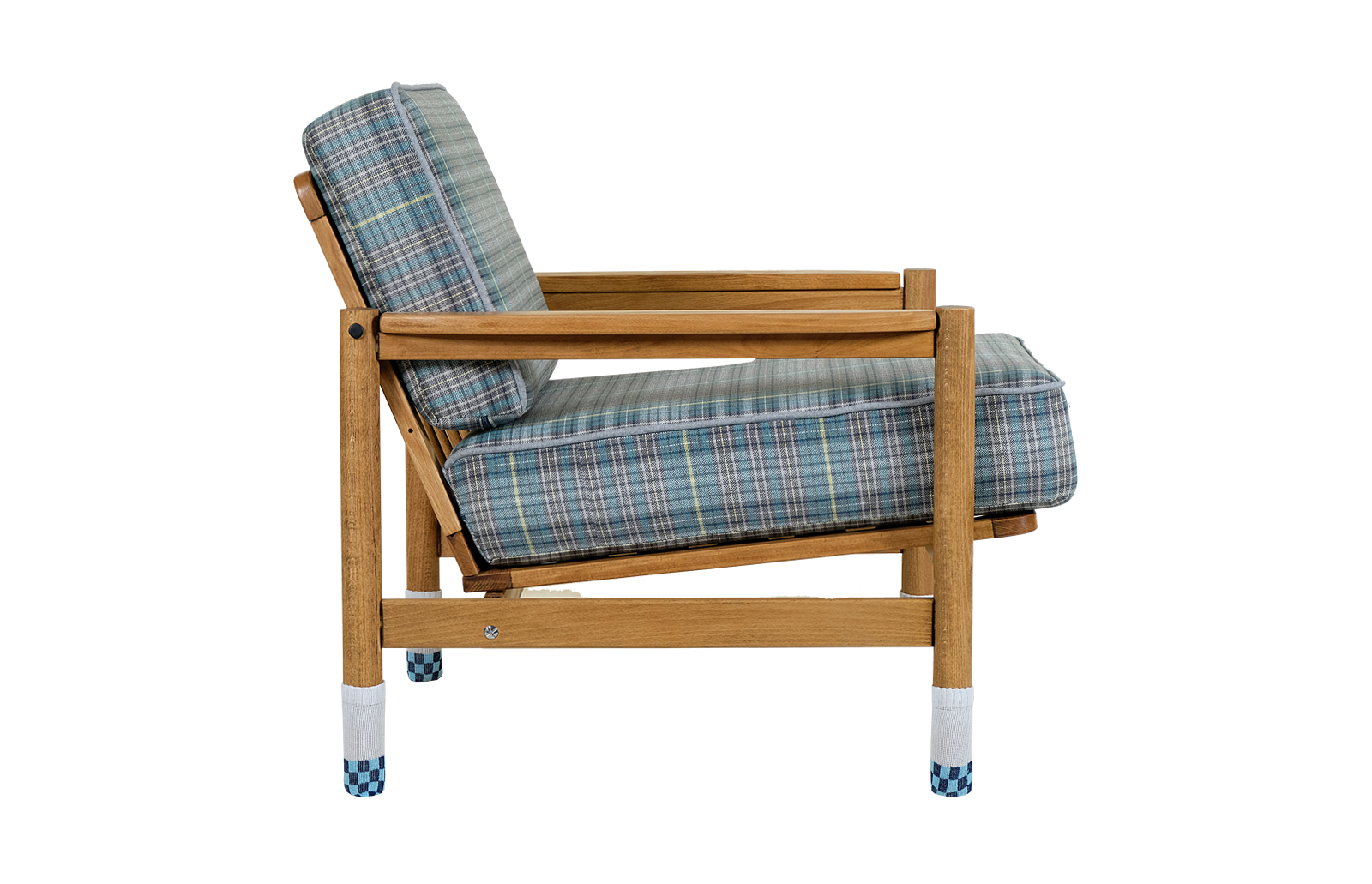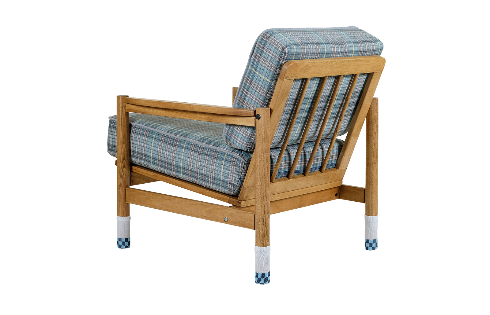Nóżki fotela „ubrane” w ciepłe, bawełniane skarpetki.