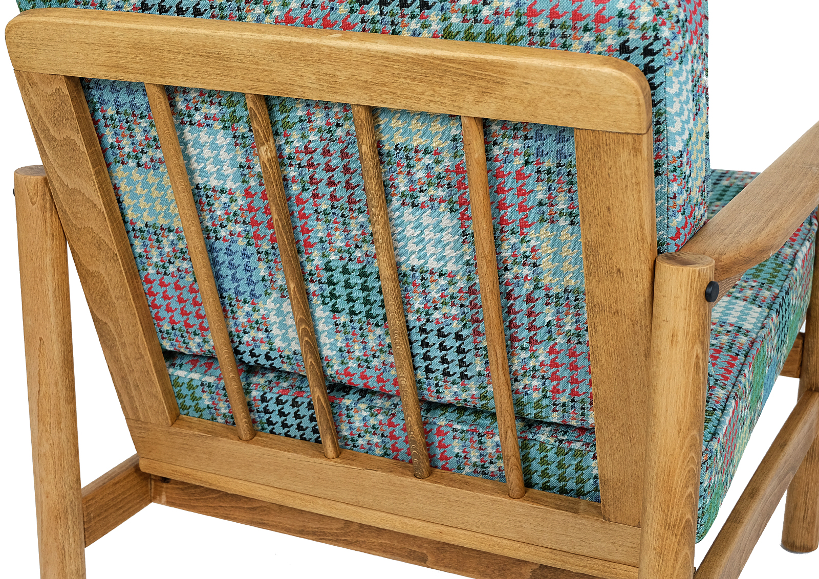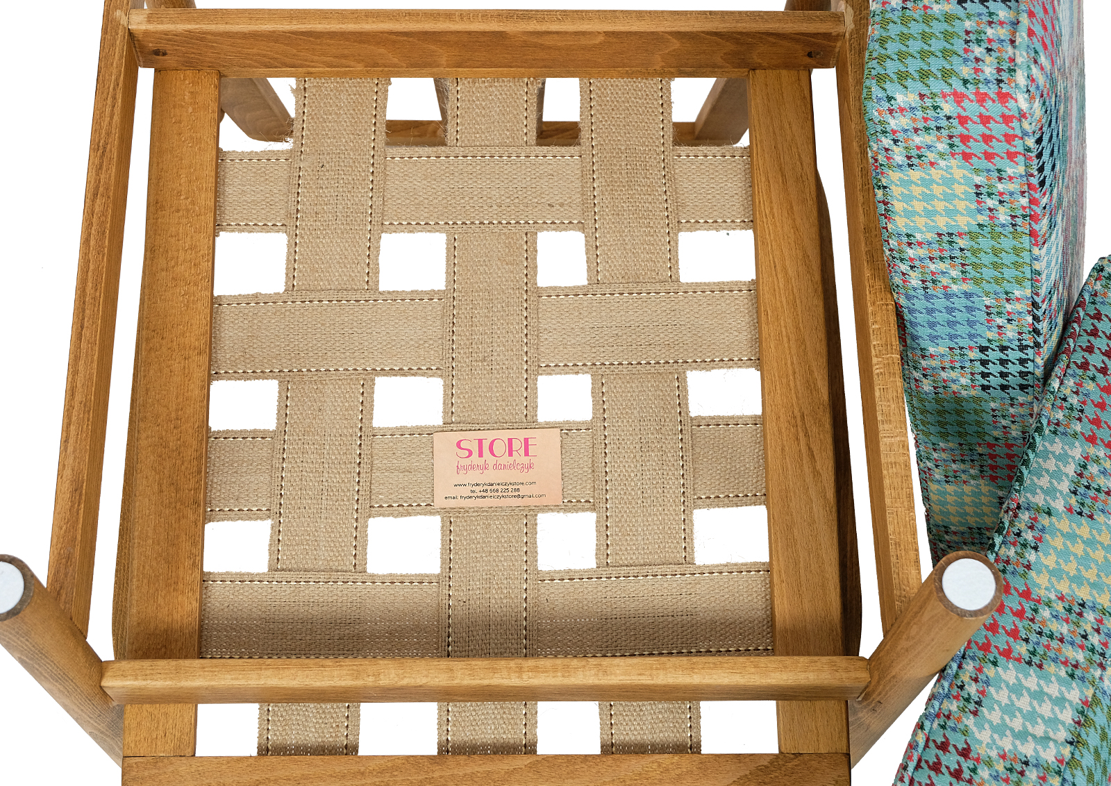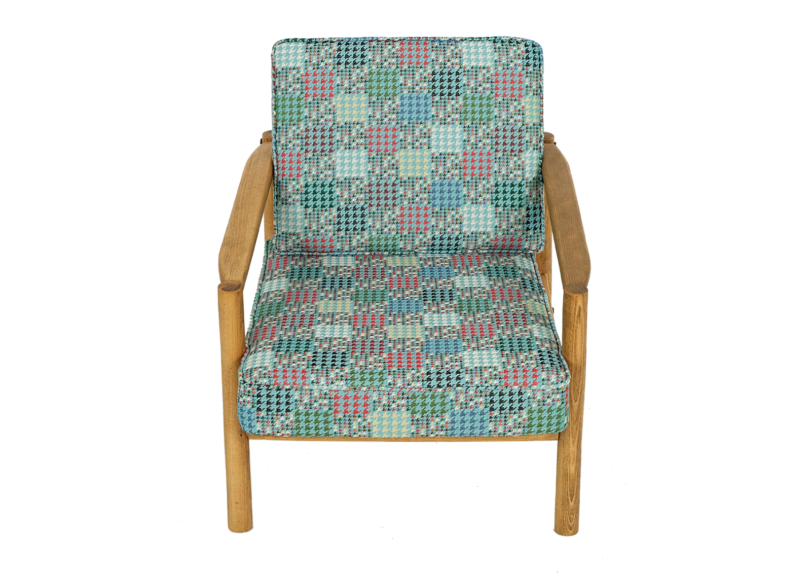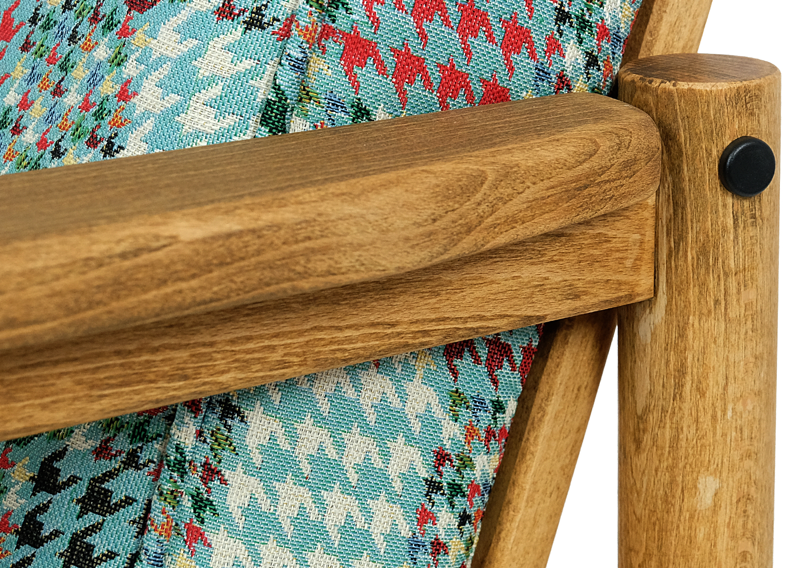 Fotel został całkowicie rozebrany, drewno oczyszczone ze starych powłok lakierniczych, sklejony ponownie, zabezpieczony olejem na bazie naturalnych olei chińskich, przyjaznym dla środowiska. Drewno bukowe. Nowa tapicerka, wymieniona gąbka, pasy, fizelina. Ręcznie szyty. Bardzo dobrej jakości tkanina, odporność na ścieranie 30 000 suwów. Nowe metalowe śruby. Szkielet wewnątrz oczyszczony dokładnie papierem. Wygodny i komfortowy, piękny i praktyczny.