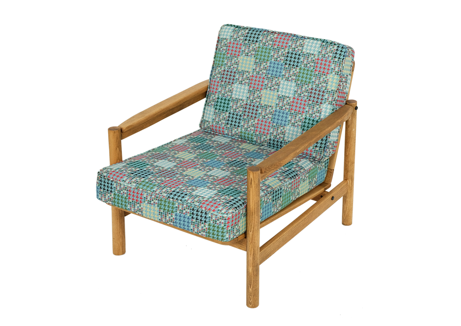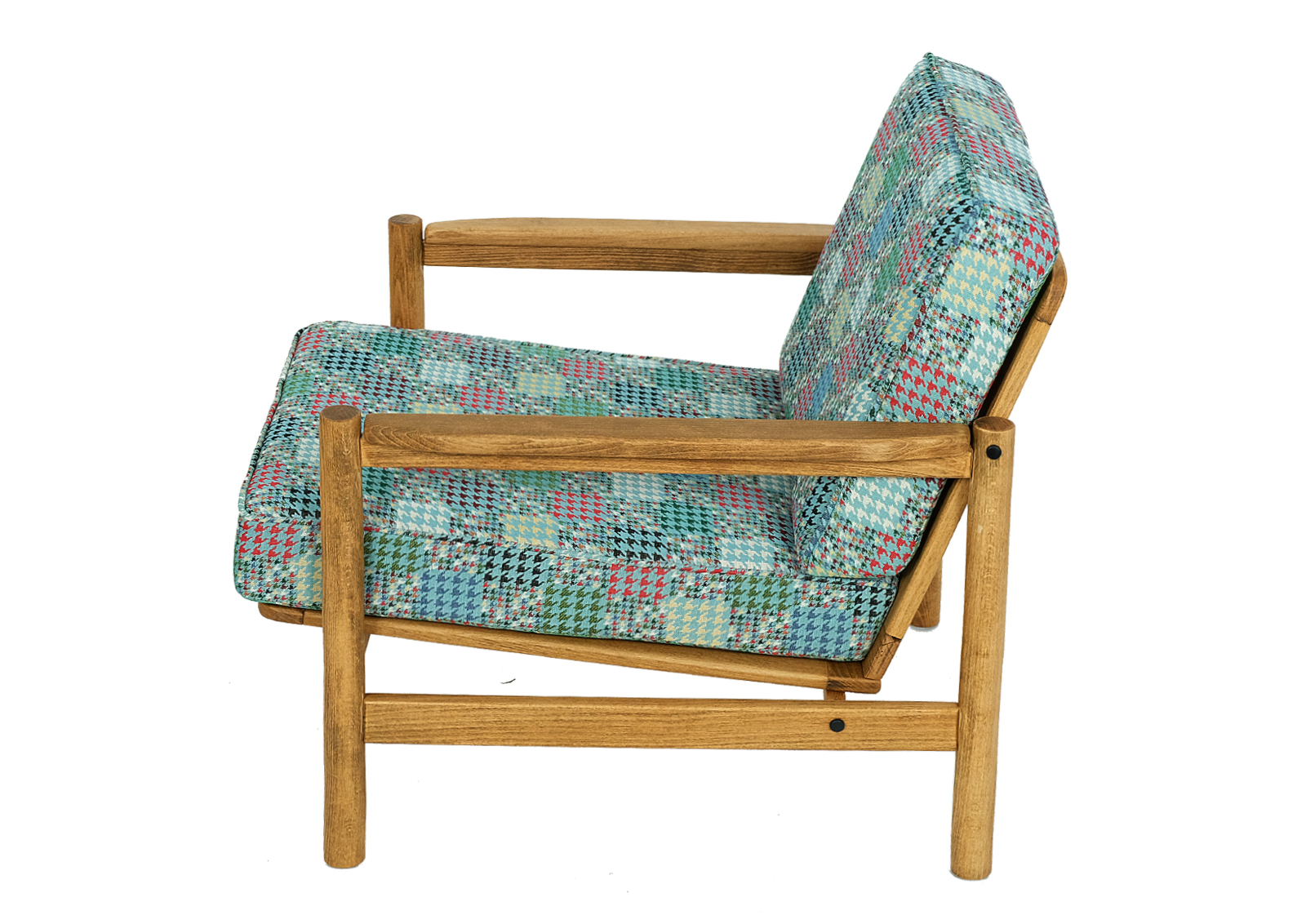 Fotel typ B-8502 z lat 70. Wyprodukowany w Zakładach Przemysłu Meblarskiego im. Gwardii Ludowej w Radomsku.
