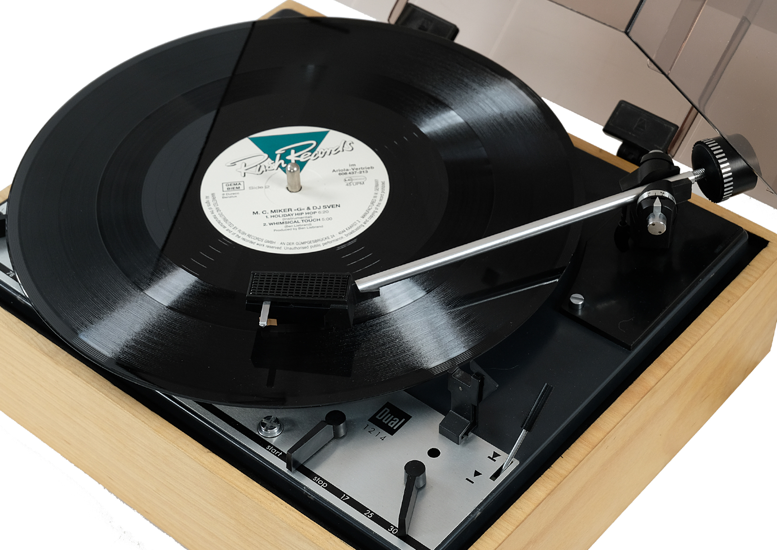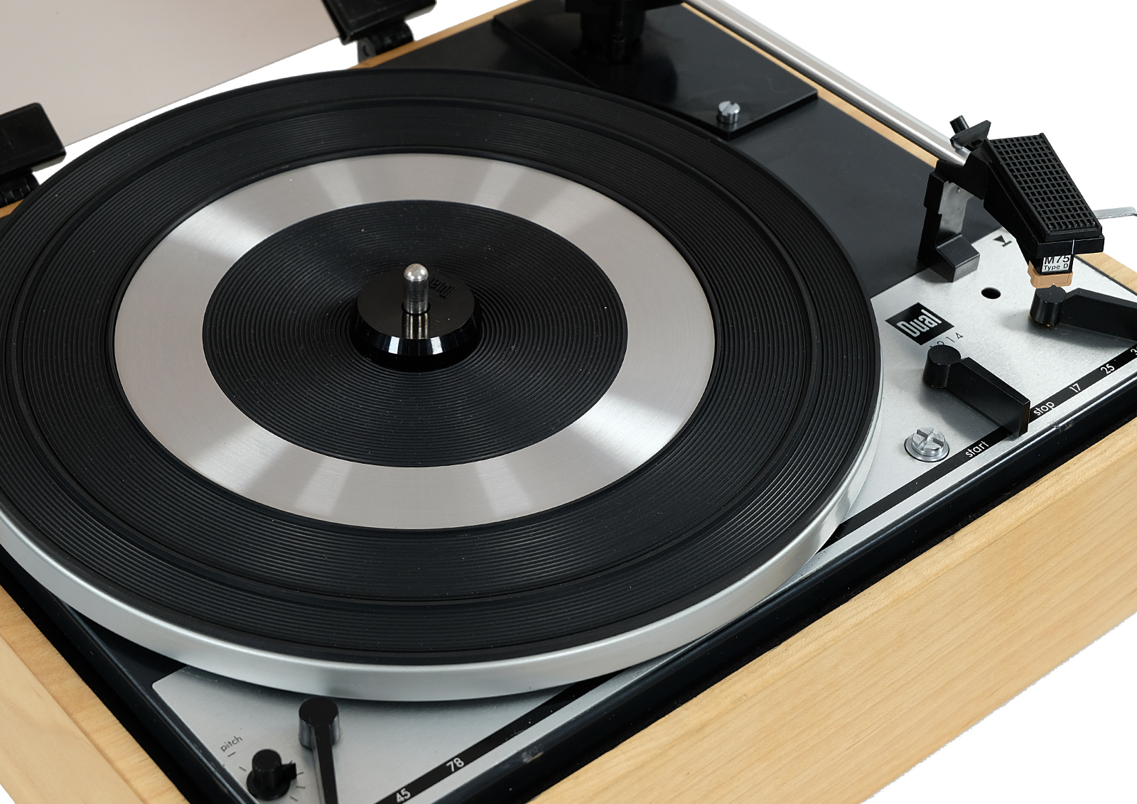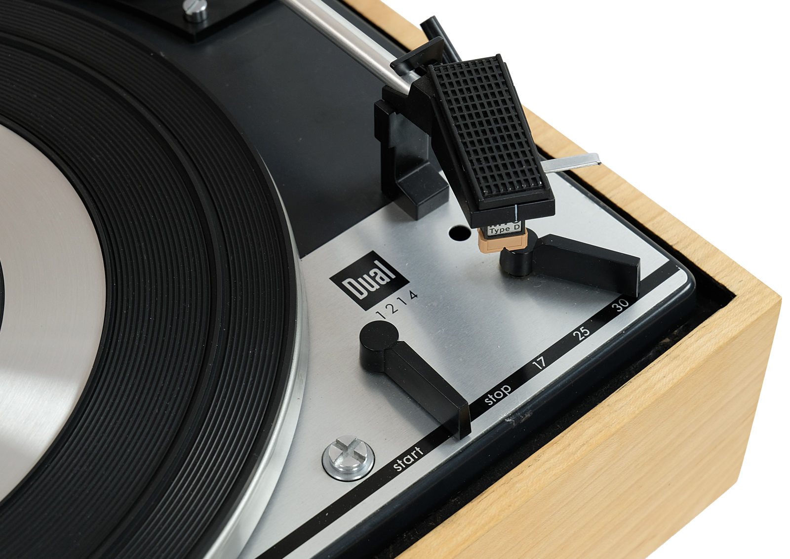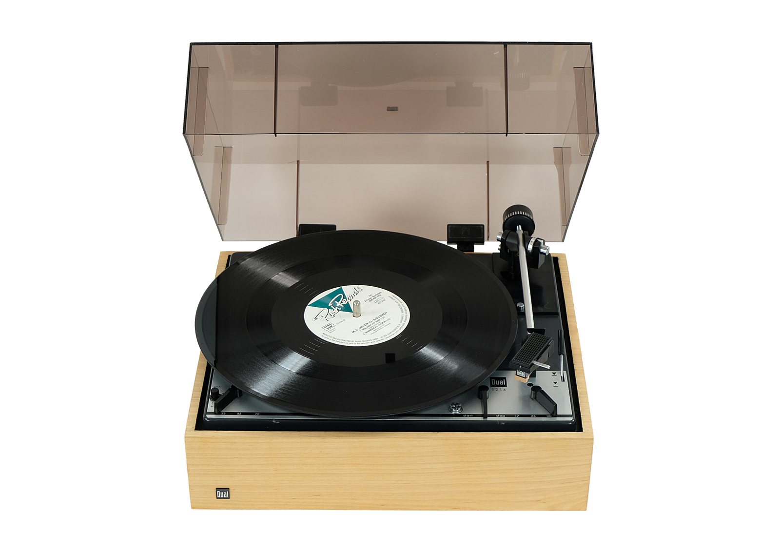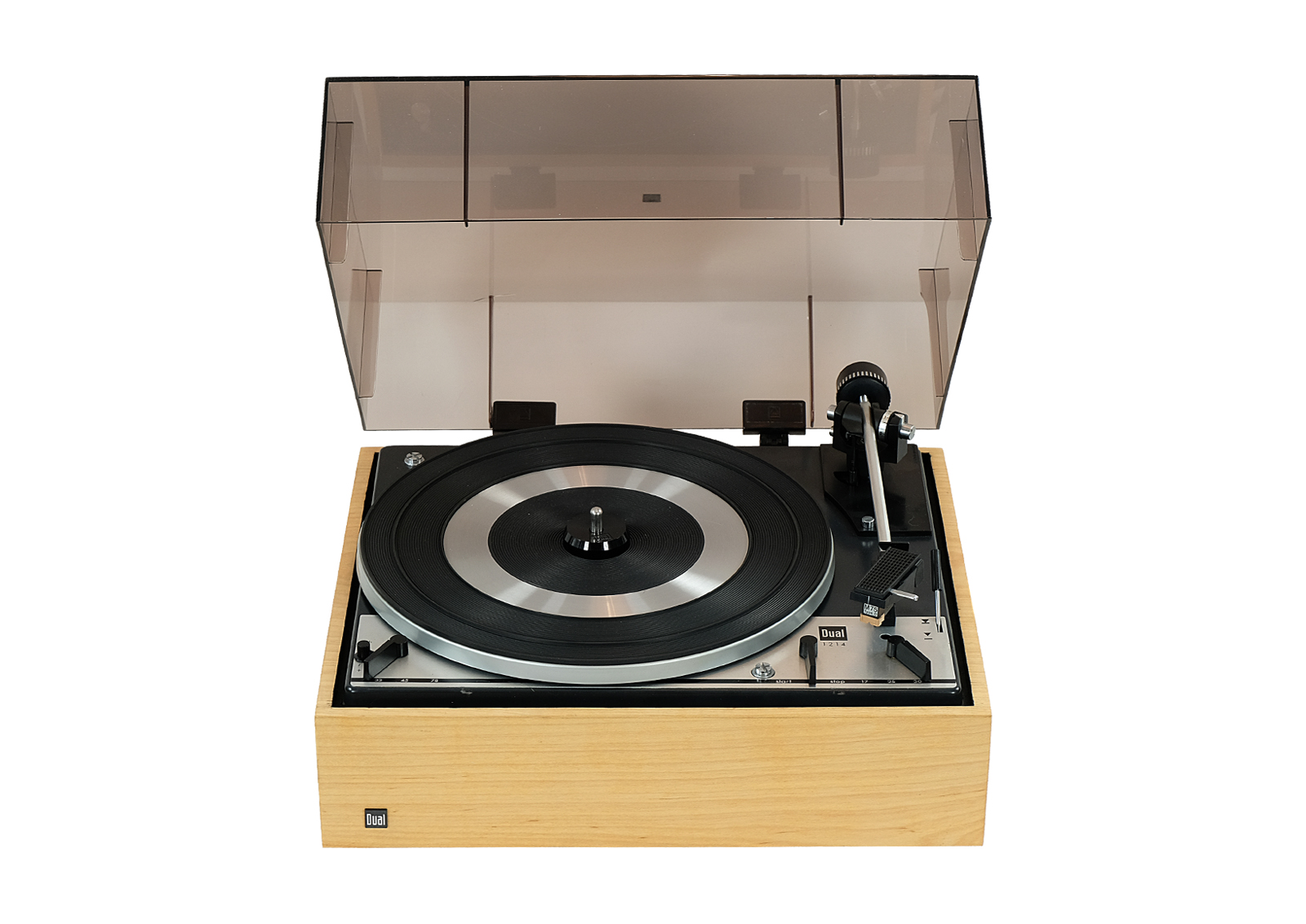 Prezentowany model 1214 był wytwarzany w całości przez firmę Dual w drewnianej bardzo prostej, wręcz minimalistycznej obudowie typ CK 9. Wyposażony jest w wyważone ramię, które łączy w sobie małą masę i wysoką sztywność. Oznaczone za pomocą numeracji pokrętło umożliwia precyzyjne i łatwe regulowanie siły nacisku w zależności od wybranego modelu wkładki.