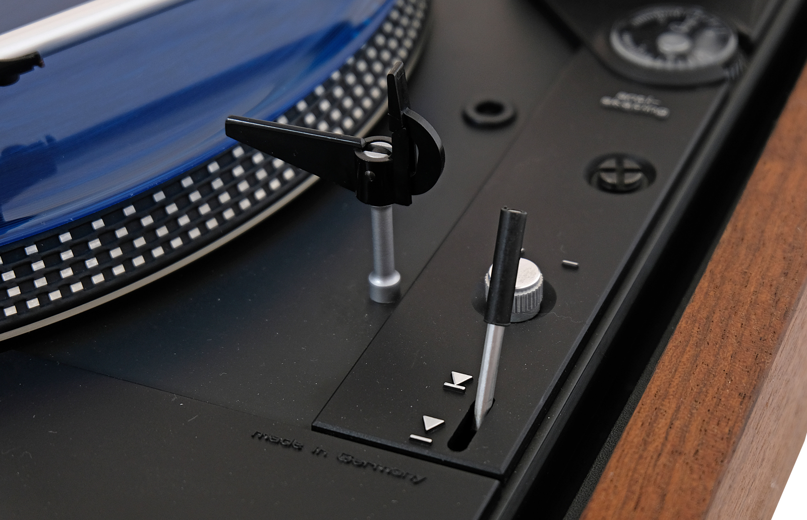 – solidny, tłumiony mechanicznie talerz z grubą matą antystatyczną