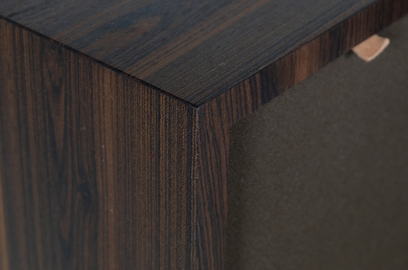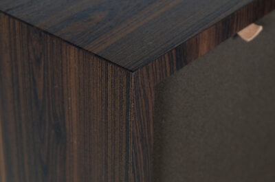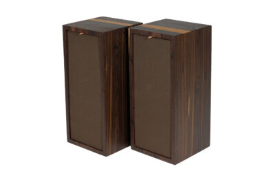 Obudowy zostały poddane całkowitej rewitalizacji. Drewno palisandru dodaje niesamowitego uroku kolumnom . Wysokiej jakości śruby wykończeniowe. Maskownice zrobione z nowej tkaniny akustycznej. Praktyczne uchwyty wykonane ze skóry umożliwiają swobodne wyjmowanie i wkładanie maskownic. Wykończenie drewna to olej chiński produkowany na bazie naturalnych olei, oraz naturalny wosk pszczeli na bazie terpentyny. Drewno bardzo miłe w dotyku. Zestaw po całkowitym przeglądzie i serwisie. Nowe terminale.