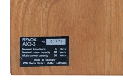 AX3-3 to monitory „półkowe” wprowadzone na rynek przez Revox-Studer w drugiej połowie lat 70tych. Model ten zaskakuje wspaniałym zrównoważonym dźwiękiem w całym paśmie. Charakteryzuje go wyjątkowa precyzja, bardzo szeroka przestrzeń muzyczna i przepiękna barwa. A wszystko dzięki konstrukcji opartej na wysokiej jakości głośnikach Isophone i Studer. Warto również zwrócić uwagę na klasyczny ponadczasowy dizajn tego szwajcarskiego projektu.