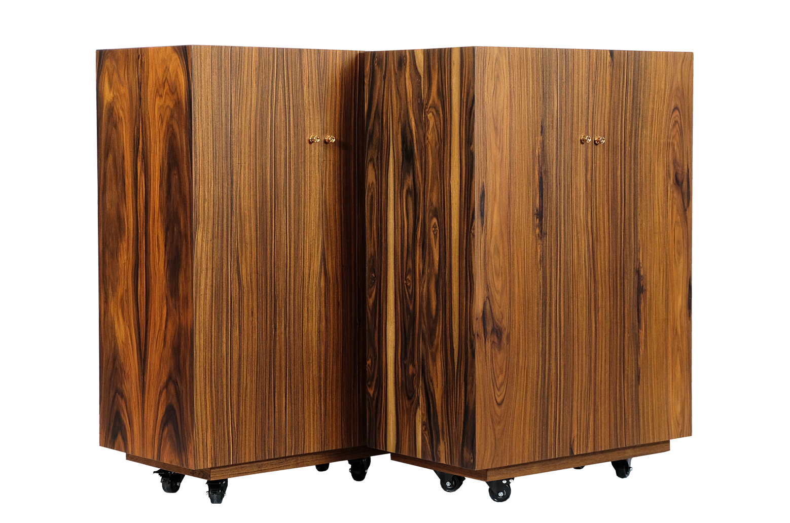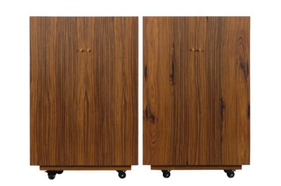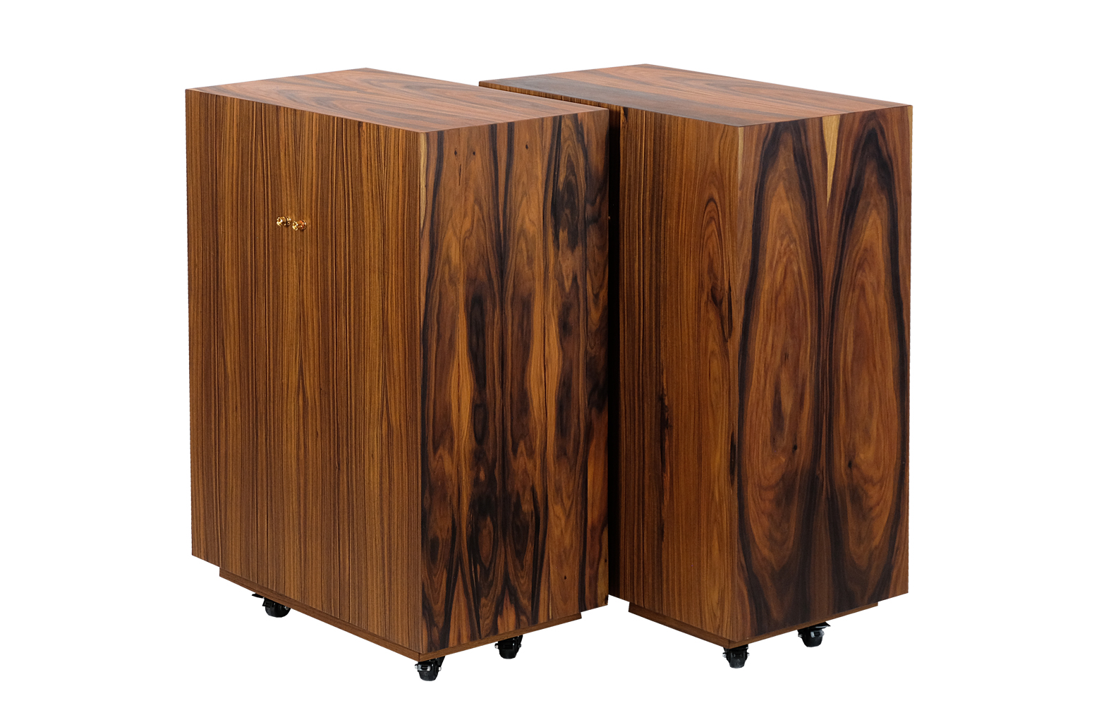Oryginalne obudowy z lat 70tych po rewitalizacji z wykorzystaniem materiałów najwyższej jakości. W tym projekcie zastosowano jeden z najpiękniejszych i najbardziej ekskluzywnych rodzajów drewna ozdobnego – palisander. Zostało ono precyzyjnie wykończone olejem chińskim produkowanym na bazie naturalnych olei oraz naturalnym woskiem pszczelim na bazie terpentyny. Dzięki temu podkreślono oryginalną strukturę i odcień drewna, a obudowy są dobrze zabezpieczone i bardzo miłe w dotyku. Zadbano o każdy detal wykończenia. Panele przednie kolumn zostały pomalowane przy użyciu samochodowej techniki lakierniczej „na mokro”. Przełączniki w zwrotnicy zostały oczyszczone. Zwrotnica po serwisie i konserwacji.