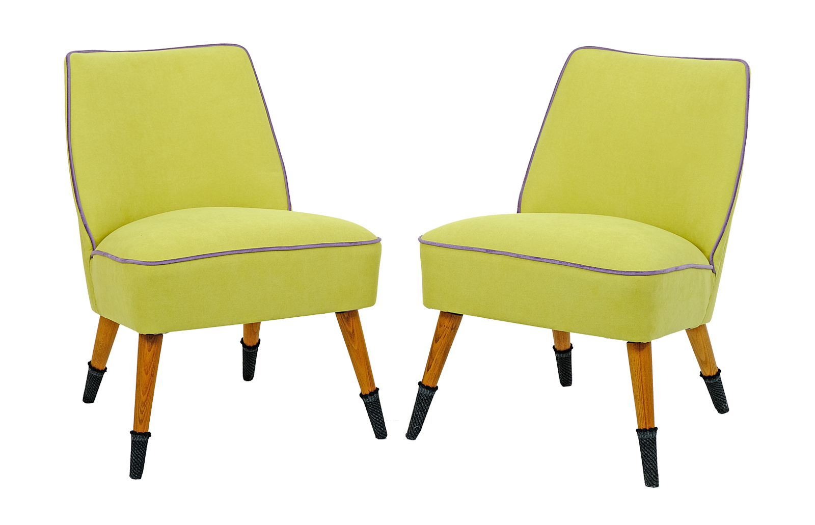 Fotele tzw. „muszelki-patyczaki” zostały wyprodukowane w Zakładach Przemysłu Meblarskiego im. Gwardii Ludowej w Radomsku w latach 70 -tych. Mimo swoich niewielkich rozmiarów są niezwykle wygodne i idealne na spotkania przy dobrej kawie.