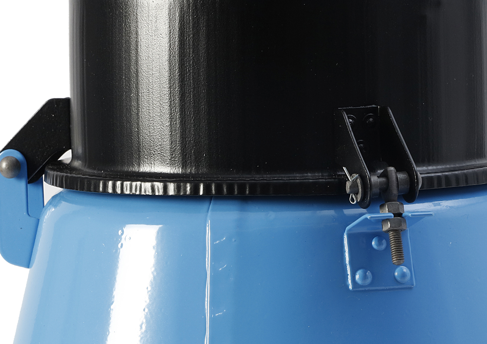 Korpus jest wykonany ze stopu aluminium jako odlew ciśnieniowy. Jego oryginalnym pokryciem była szara farba młotkowa, lampa oczyszczona, wypiaskowana i pomalowana proszkowo w trzech kolorach: niebieski, czarny z fakturą i biały wewnątrz odbijający światło. Dół lampy stanowi masywny szklany klosz tzw. fresnel, który charakteryzuje się okrągłymi przeżłobieniami . Oryginalne oczyszczone śrubki i elementy połączeniowe W zestawie z lampą znajduje się 60cm stalowego łańcucha, oraz kabla elektrycznego, metalowy hak, żarówka halogenowa LEXMAN pobierająca 77 Wat, świecąca jak 100 Watowa, o możliwości ściemniania. Temperatura barwowa 2800 K, ciepłe żółte światło. Zestaw gotowy do montażu. Kultowy model lampy przemysłowej PRL.