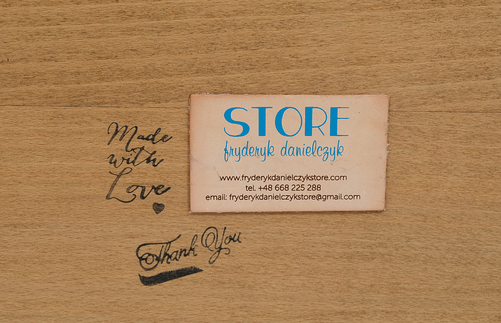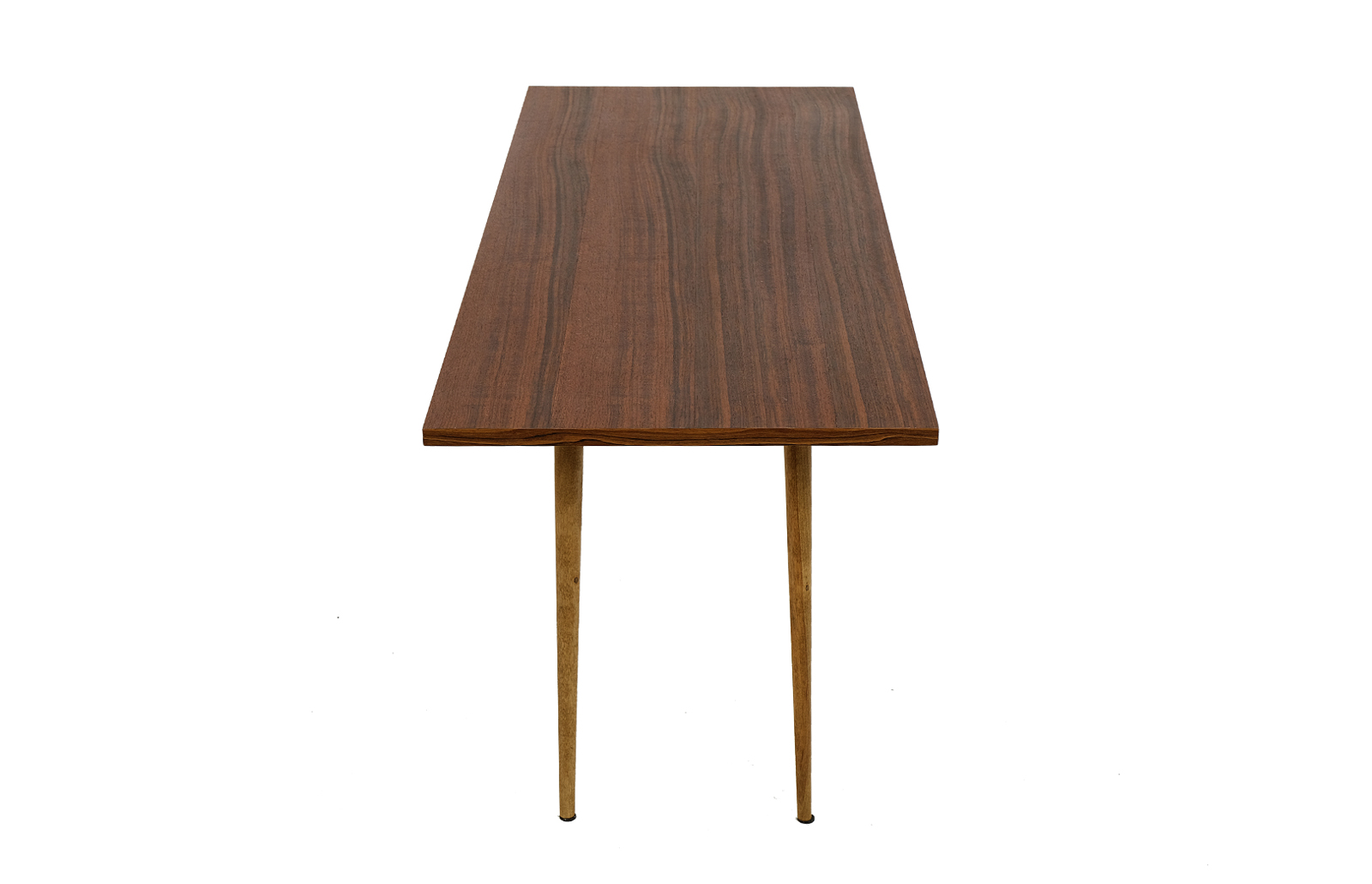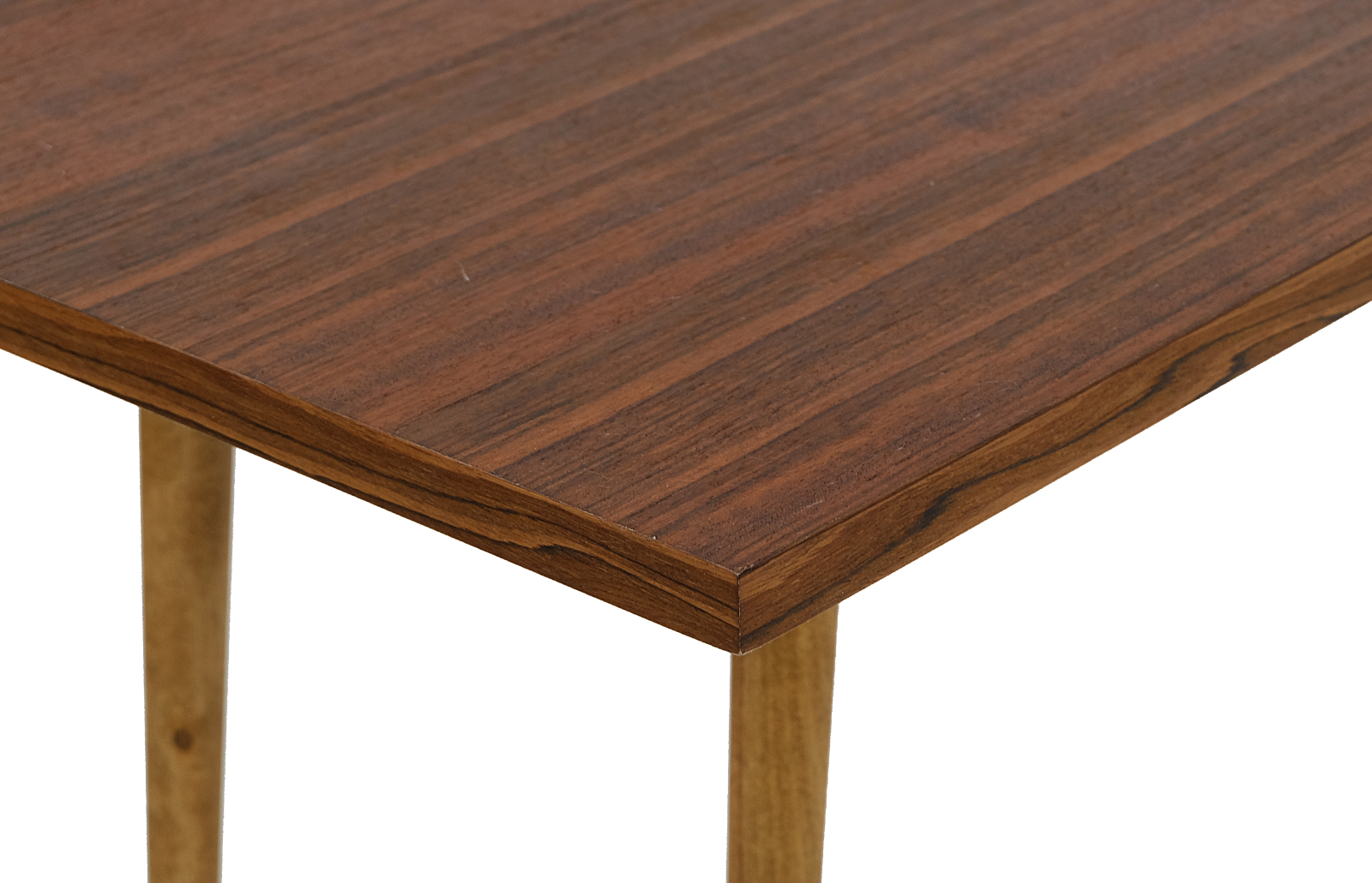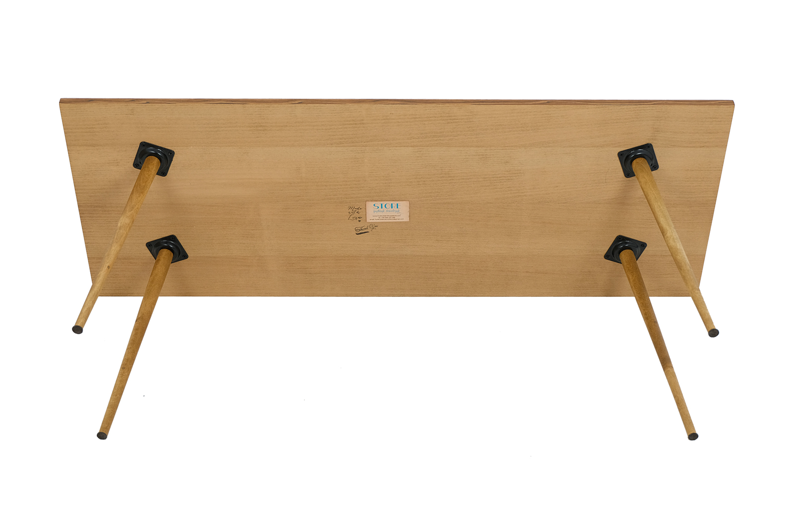 Ława kawowa PRL, patyczak (jamnik), po całkowitej rewitalizacji. Ława została całkowicie oczyszczona ze starych powłok lakierniczych. Wykonana z egzotycznego drewna JATOBE i Olchy, nogi to drewn0 bukowe. Zabezpieczona olejem na bazie naturalnych olei chińskich, przyjaznym dla środowiska. Blat woskowany, odporny na działanie wody. Porządny, stabilny mebel z nóżkami osadzonymi w metalowych mocowaniach z możliwością odkręcania. Elementy metalowe do montażu nóg zostały wypiaskowane i pomalowane farbą proszkową. Kultowy model ławy PRL.