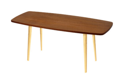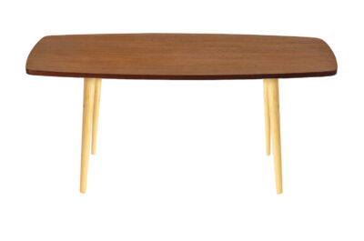 Ława kawowa PRL, patyczak (jamnik), po całkowitej rewitalizacji. Ława została całkowicie oczyszczona ze starych powłok lakierniczych. Oklejona obłogiem mahoniowym, nogi wykonane są z drewna bukowego. Zabezpieczona olejem na bazie naturalnych olei chińskich oraz woskiem pszczelim na bazie terpentyny, przyjaznym dla środowiska. Blat woskowany, odporny na działanie wody. Porządny, stabilny mebel z odkręcanymi nóżkami osadzonymi w drewnianych mocowaniach. Kultowy model ławy PRL.