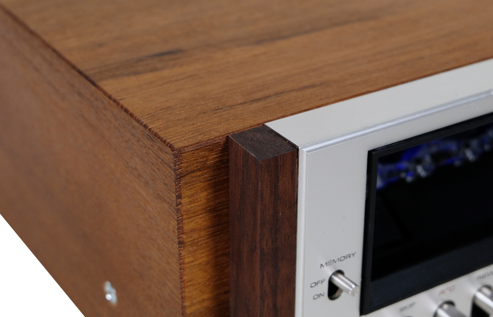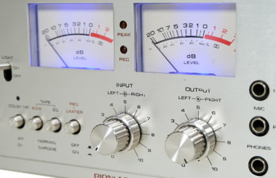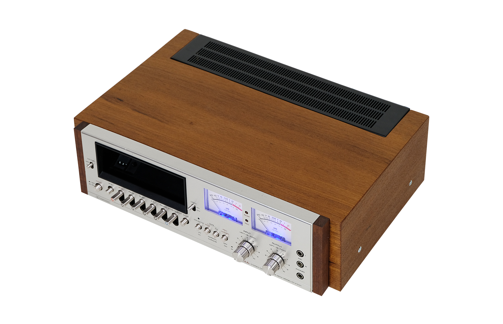 Potencjometry w idealnym stanie. Panel przedni wykonany ze szczotkowanego aluminium. Nowe niebiesko-fioletowe oświetlenie podświetlające kasetę i wskaźniki.