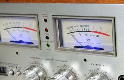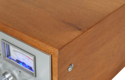 Potencjometry w idealnym stanie. Panel przedni wykonany ze szczotkowanego aluminium. Nowe niebiesko-fioletowe oświetlenie podświetlające kasetę i wskaźniki.
