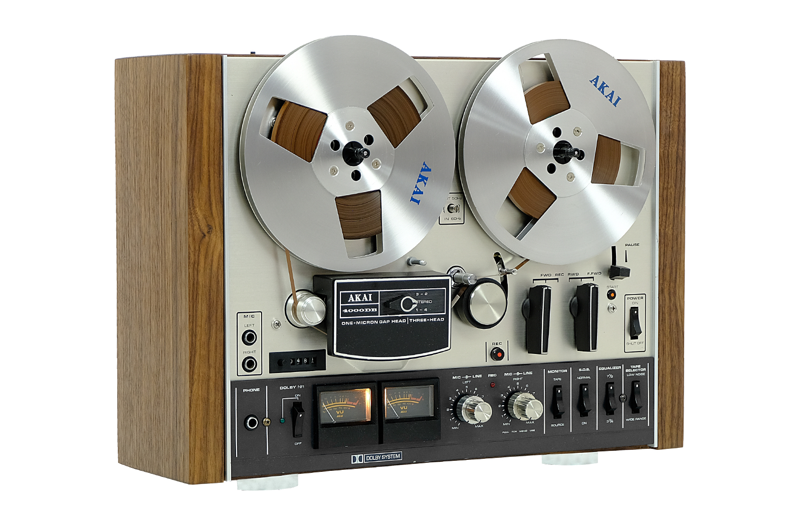 Magnetofon szpulowy 4000 DB, to jeden z pierwszych klasycznych modeli AKAI – firmy, która miała ogromny wkład w rozwój rynku „szpulowców”. Jest to niezwykle solidny i długowieczny magnetofon jednosilnikowy wyposażony w trzy głowice Akai o grubości jednego mikrona zapewniające bardzo wysoką jakość i czystość dźwięku, oraz dobrze znany system redukcji szumów Dolby. Świetnie zaprojektowane koła zamachowe w modelu zapewniają stabilne przesuwanie taśmy zmniejszając drgania i trzepotanie.