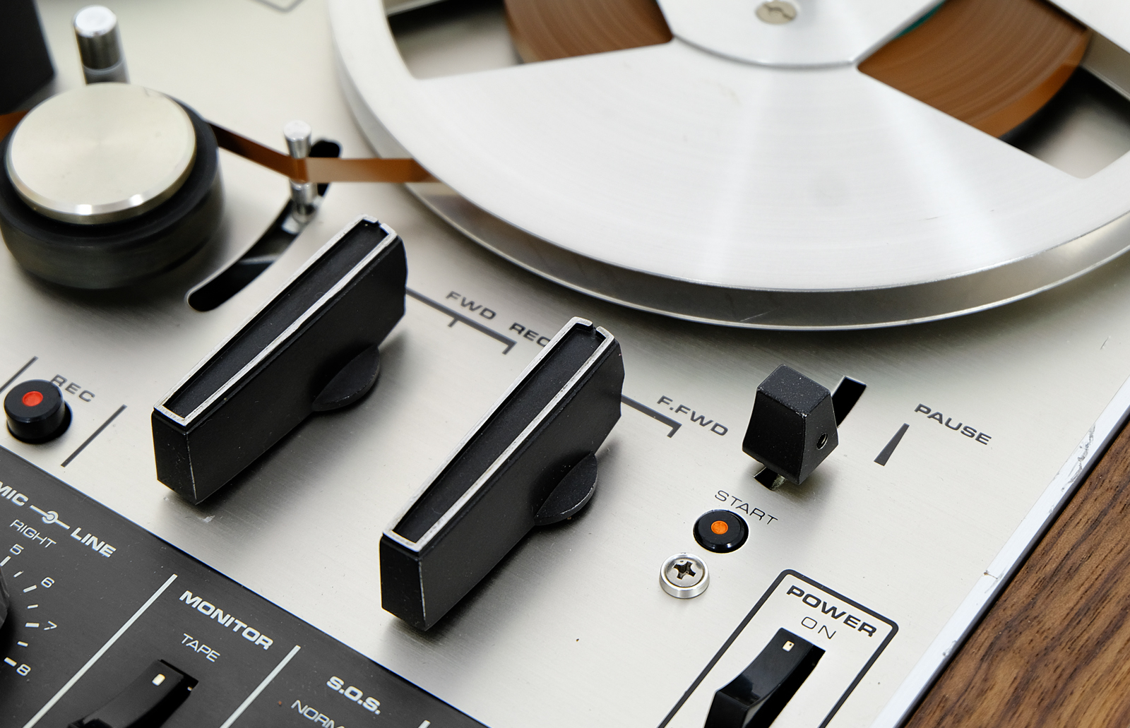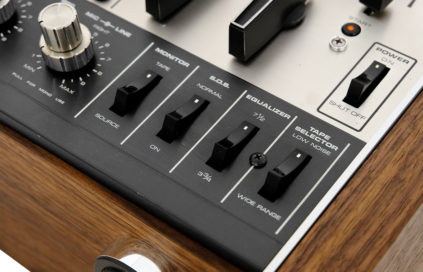 Niezależne kontrolki poziomu i mikrofonu oraz gniazda wejściowe umożliwiają jednoczesne mieszanie i nagrywanie sygnałów z mikrofonu i źródeł liniowych Przewlekanie taśmy przez automatyczną dźwignię odcinającą i ustawianie przełącznika zasilania w pozycji wyłączenia jest wszystkim, co jest konieczne do wykonania automatycznego wyłączenia na końcu taśmy. Wygodna funkcja bezpieczeństwa w przypadku pozostawienia urządzenia bez nadzoru.