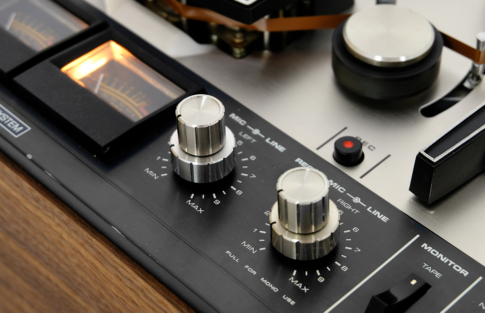Podświetlane mierniki VU z wewnętrzną podświetlaną skalą zapewniają szybkie i dokładne określenie poziomów nagrywania i odtwarzania.