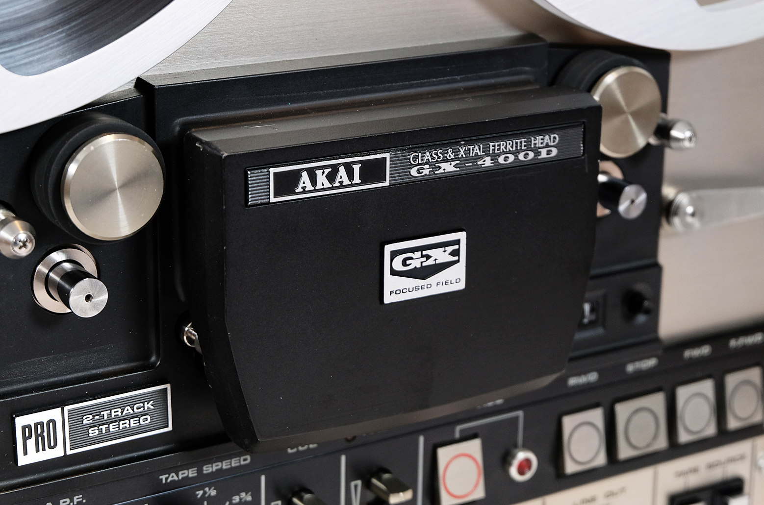AKAI GX-400D to magnetofon 2-ścieżkowy z możliwością odtwarzania 4 ścieżek wypuszczony na rynek w 1973 roku jako najwyższy model w swojej serii. Do budowy rdzenia głowicy GX wykorzystano najwyższej jakości utwardzane szkło i kryształ, co przekłada się na bardzo wysoką wydajność konwersji elektromagnetycznej i doskonałe właściwości wysokoczęstotliwościowe. Dzięki zastosowaniu tego rozwiązania uzyskano wyjątkową odporność na ścieranie oraz znacznie lepszy stosunek sygnału do szumu. Ponadto w tym modelu wbudowano podwójny mechanizm napędowy z użyciem nowo zaprojektowanego serwosilnika prądu przemiennego. Dzięki temu otrzymujemy dokładną prędkość obrotową i moment obrotowy niezależnie od wahań warunków obciążenia zewnętrznego. Dodatkowo odchylenie prędkości taśmy jest zmniejszane dzięki zastosowaniu zaawansowanego elektronicznego obwodu sterującego. Zastosowano też system bezpośredniej zmiany funkcji. W rezultacie przyciski mają wysoką czułość i działają niezwykle płynnie.