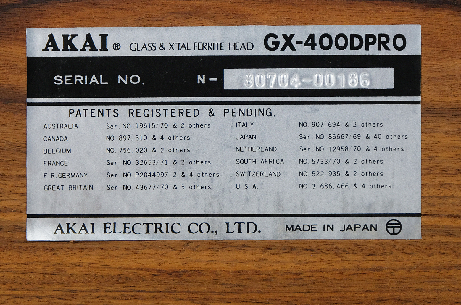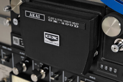 AKAI GX-400D to magnetofon 2-ścieżkowy z możliwością odtwarzania 4 ścieżek wypuszczony na rynek w 1973 roku jako najwyższy model w swojej serii. Do budowy rdzenia głowicy GX wykorzystano najwyższej jakości utwardzane szkło i kryształ, co przekłada się na bardzo wysoką wydajność konwersji elektromagnetycznej i doskonałe właściwości wysokoczęstotliwościowe. Dzięki zastosowaniu tego rozwiązania uzyskano wyjątkową odporność na ścieranie oraz znacznie lepszy stosunek sygnału do szumu. Ponadto w tym modelu wbudowano podwójny mechanizm napędowy z użyciem nowo zaprojektowanego serwosilnika prądu przemiennego. Dzięki temu otrzymujemy dokładną prędkość obrotową i moment obrotowy niezależnie od wahań warunków obciążenia zewnętrznego. Dodatkowo odchylenie prędkości taśmy jest zmniejszane dzięki zastosowaniu zaawansowanego elektronicznego obwodu sterującego. Zastosowano też system bezpośredniej zmiany funkcji. W rezultacie przyciski mają wysoką czułość i działają niezwykle płynnie.