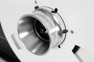 Oryginalne szpule REVOX, które zostały rozłożone, wyczyszczone i pomalowane przy użyciu samochodowej techniki lakierniczej „na mokro”.