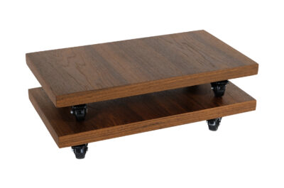Mobile speakers platform to elegancka, wysokiej jakości podstawka służąca do ustawiania i przesuwania cięższych modeli kolumn podłogowych. Do wykonania platformy zastosowano jedno z najpiękniejszych i najcenniejszych drewien ozdobnych – teak. Zostało ono precyzyjnie wykończone olejem chińskim produkowanym na bazie naturalnych olei oraz naturalnym woskiem pszczelim na bazie terpentyny. Dzięki temu świetnie zabezpieczono drewno podkreślając zarazem jego oryginalną strukturę i odcień. Platforma została również wyposażona w kółka obrotowe wykonane z tworzywa z łożyskami metalowymi i hamulcem.