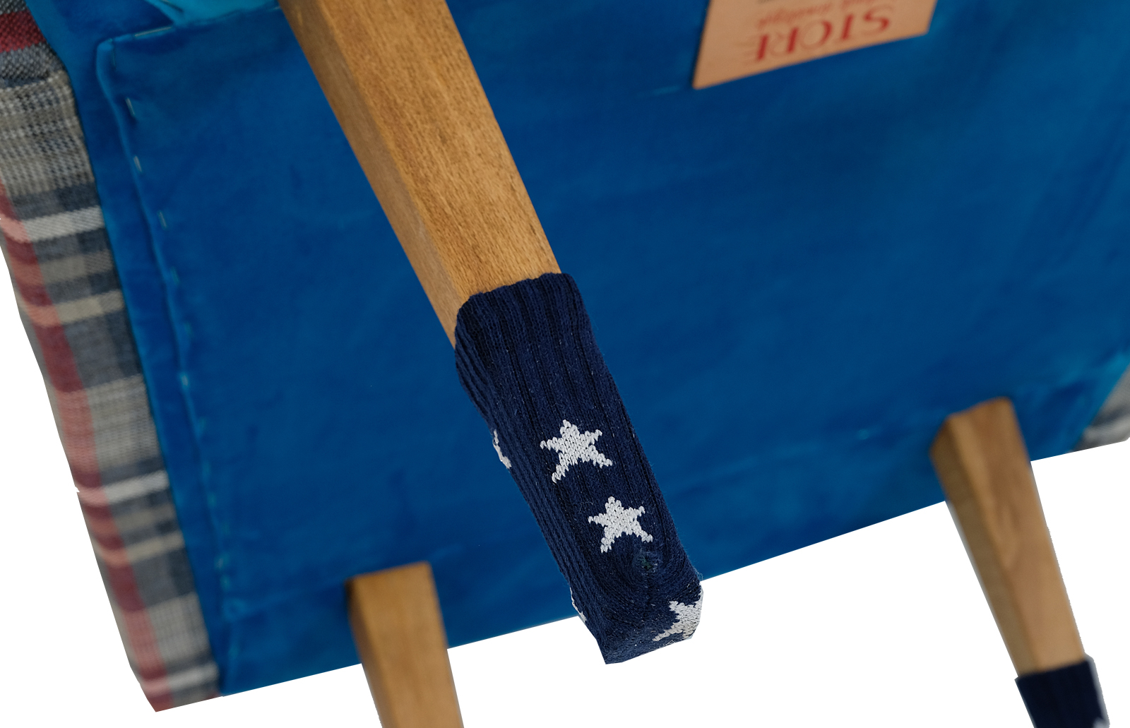 Nóżki foteli „ubrane” w ciepłe, świąteczne skarpetki