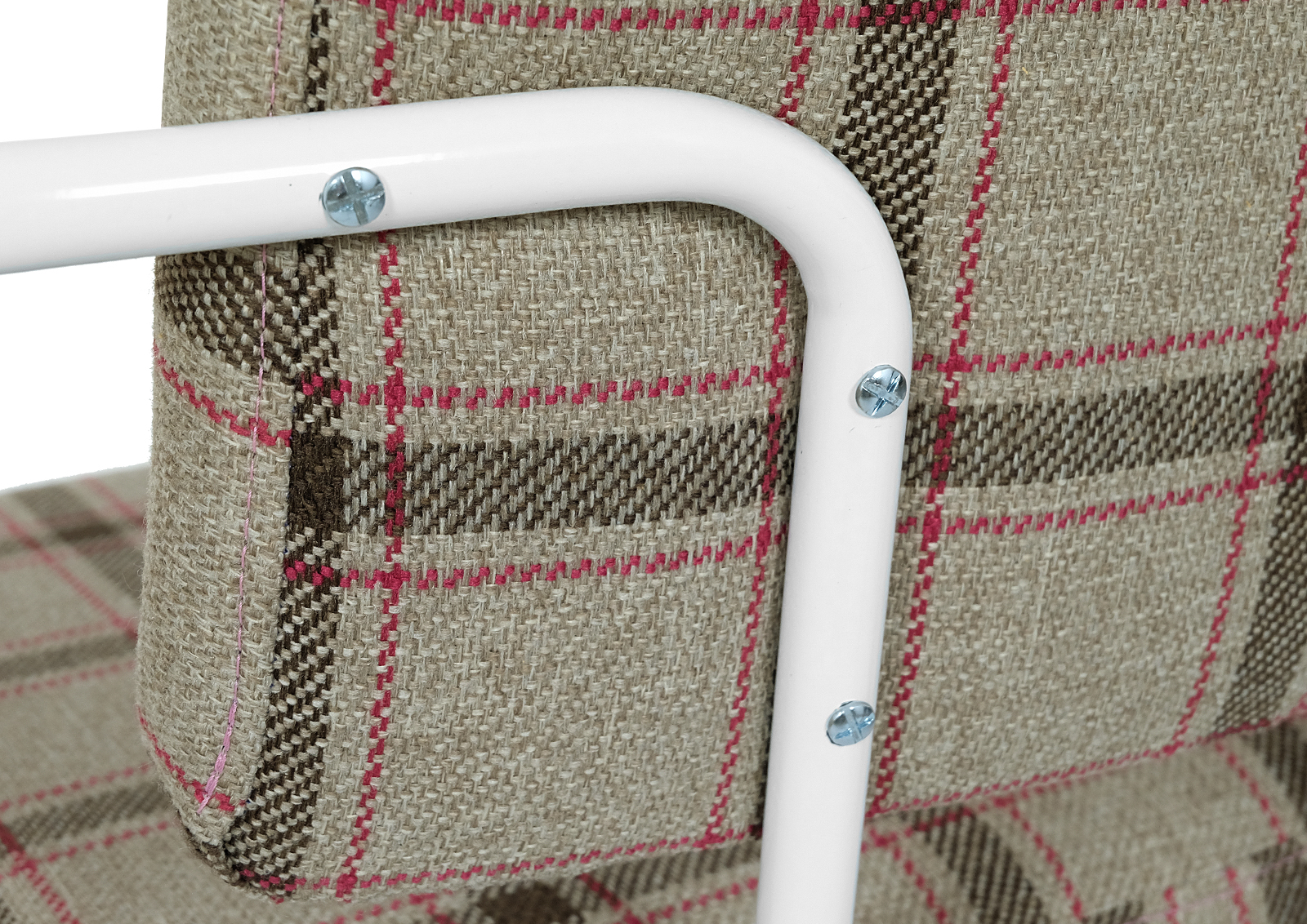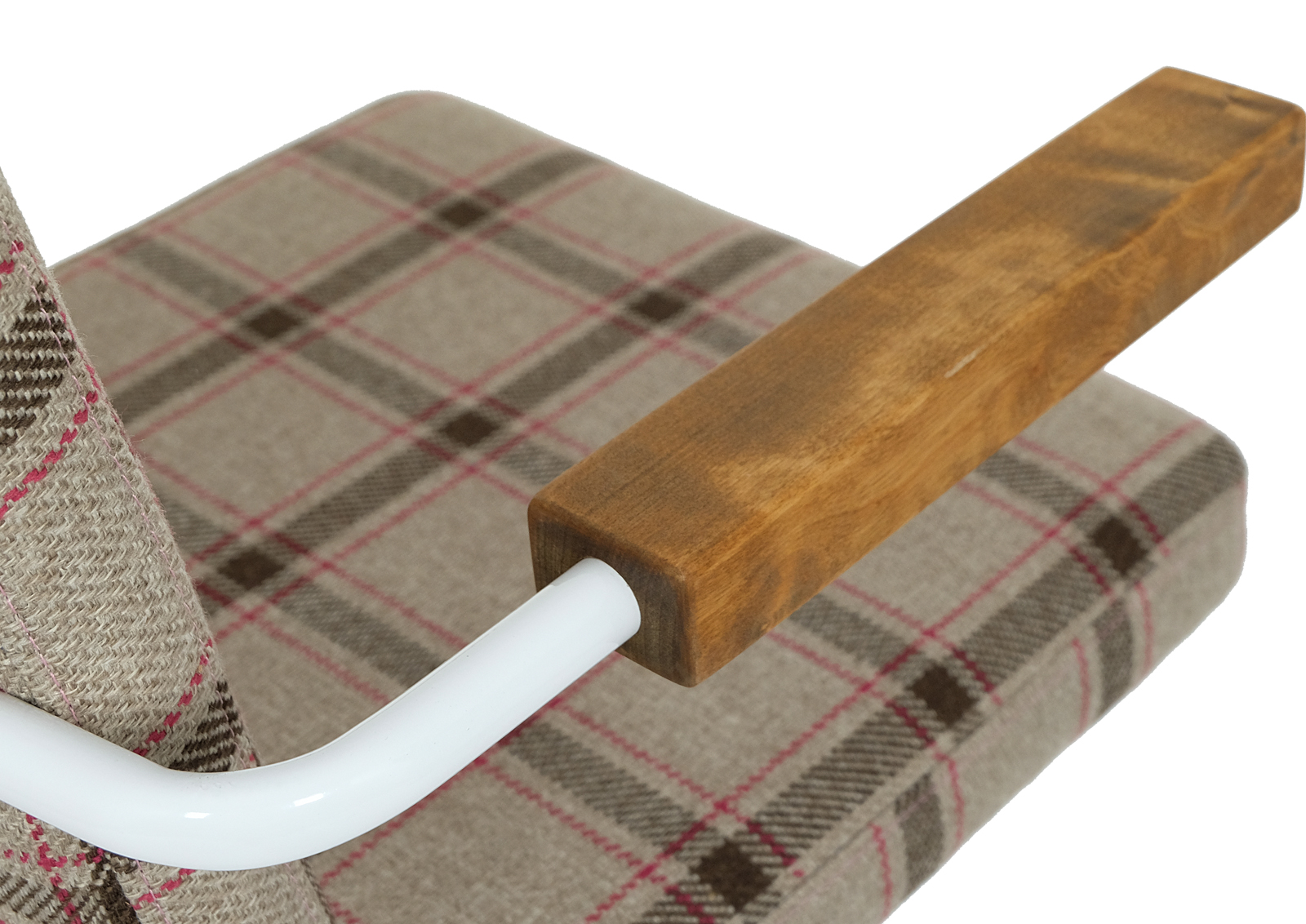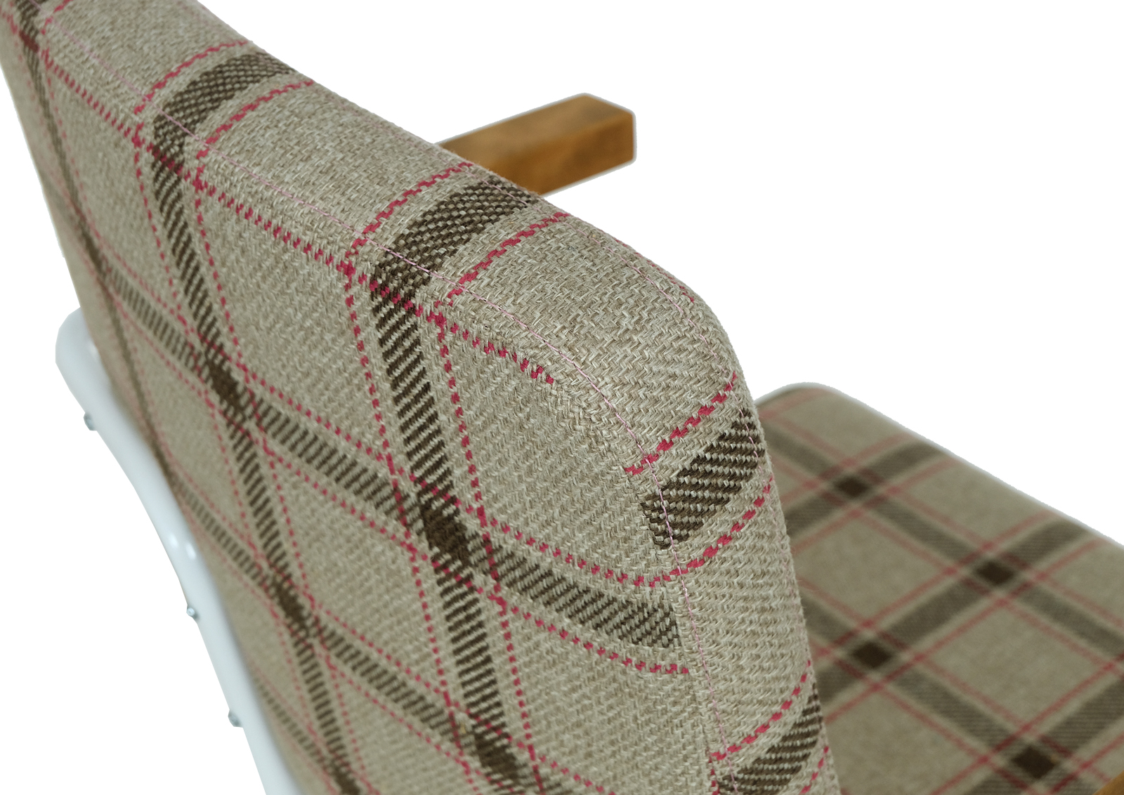 Fotelik został całkowicie rozebrany, drewno oczyszczone ze starych powłok lakierniczych, zabezpieczony olejem na bazie naturalnych olei chińskich, przyjaznym dla środowiska. Drewno bukowe. Wszystkie elementy metalowe zostały oczyszczone, wypiaskowane i pomalowane farbą proszkową wypalaną w wysokiej temperaturze. Nowa tapicerka i gąbka o wysokiej gęstości. Nowe regulowane nóżki w podstawie, podklejone filcem. Ręcznie szyty. Bardzo dobrej jakości tkanina, odporność na ścieranie