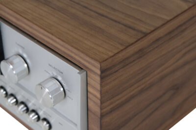 Nowa ręcznie wykonana obudowa została zaprojektowana w oparciu o oryginalne, klasyczne konstrukcje z lat 70tych. Zastosowano drewno orzecha amerykańskiego pięknie wykończone olejem chińskim produkowany na bazie naturalnych olei oraz naturalnym woskiem pszczelim na bazie terpentyny. Zadbano o każdy detal wykończenia zarówno wewnątrz jak i w tylnej części obudowy.