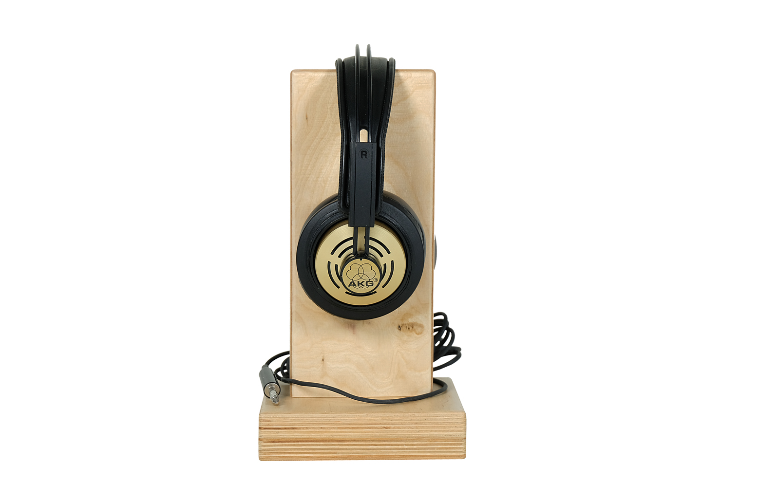 Specjalnie zaprojektowane i ręcznie wykonane solidne standy na słuchawki w zestawie. Materiał to sklejka polakierowana przy użyciu samochodowej techniki lakierniczej ?na mokro?, co nadaje standom piękny wygląd i sprawia, że są bardzo miłe w dotyku. Podstawa została podklejona filcem, aby zabezpieczyć meble przed zarysowaniem.